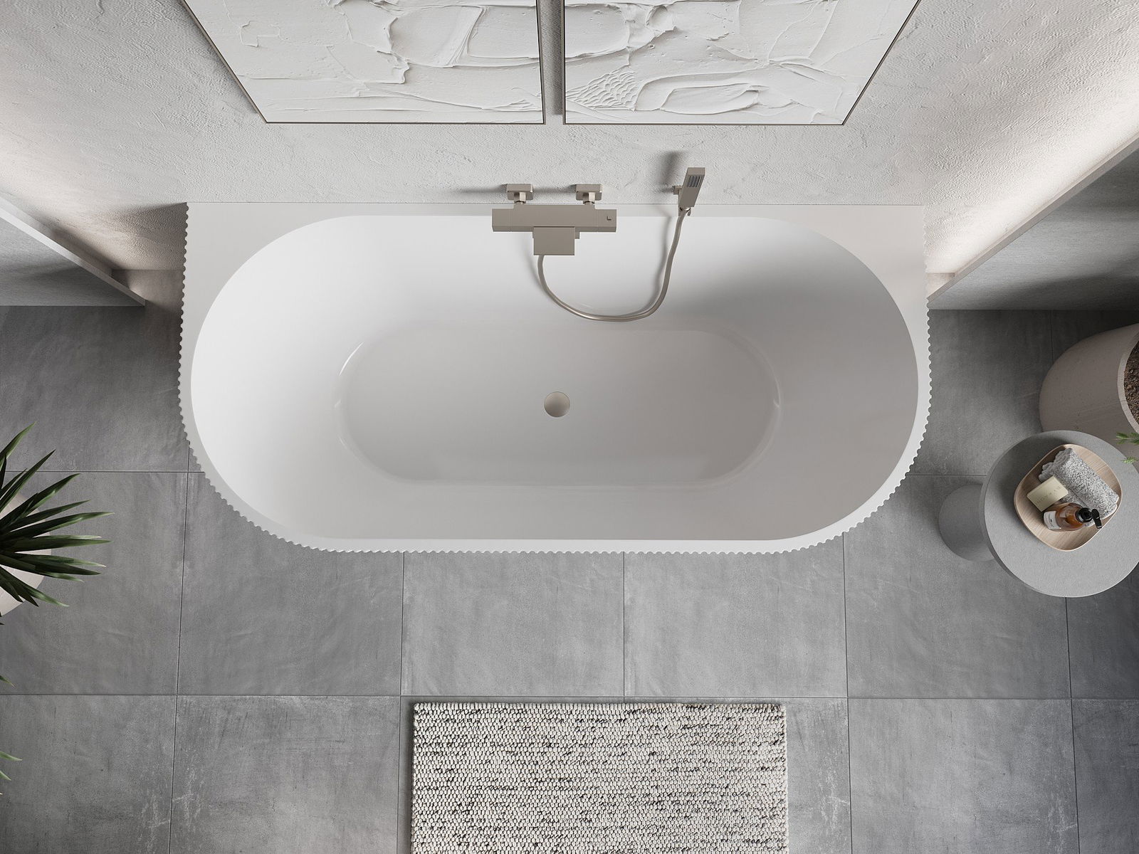 Това е модерен материал, който съчетава елегантен вид с висока издръжливост. Устойчив е на механични повреди, лесен за почистване и приятен на допир. Прозрачната форма и тънкият ръб на ваната ѝ придават лекота и уникален характер, създавайки ефектен акцент в подредбата на банята.