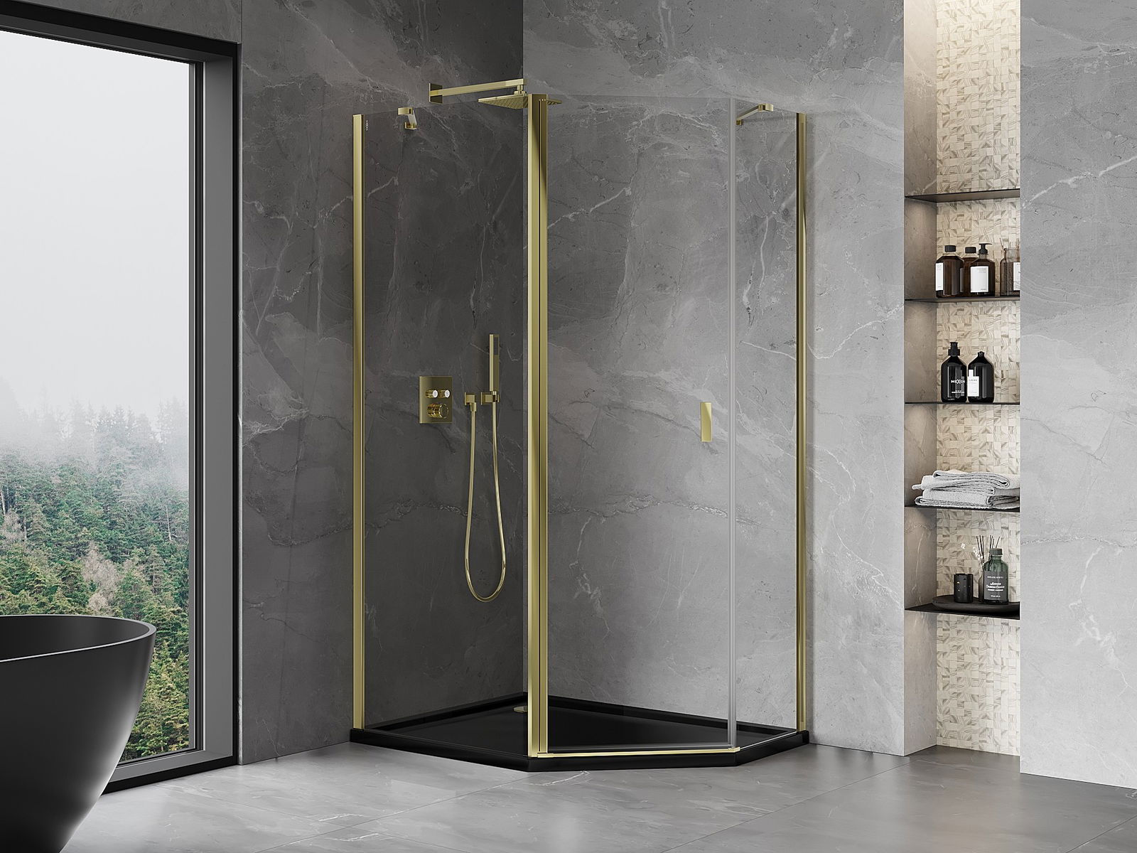 Mexen Mist асиметрична петстенна душ кабина 90 x 80 см, прозрачна, златна - 8A8-090-080-50-00