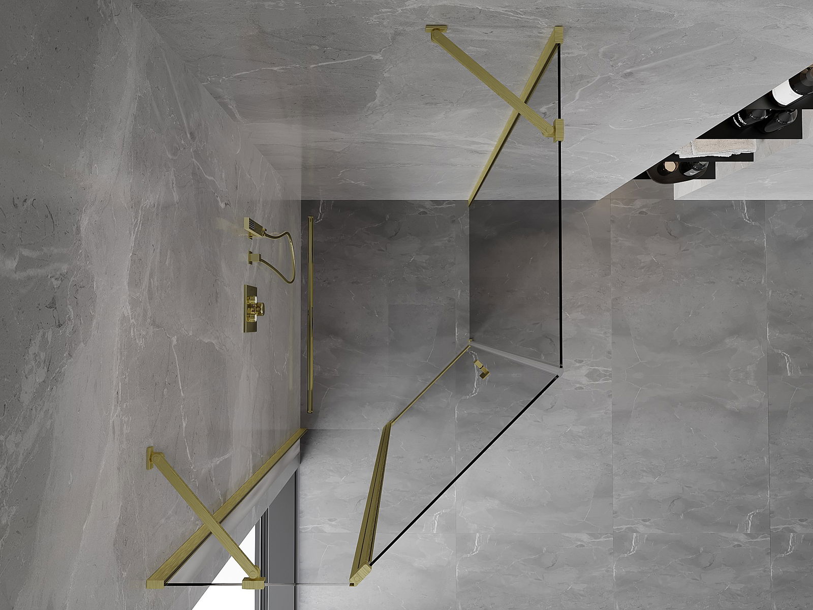 Mexen Mist асиметрична петстенна душ кабина, отваряща се, 80 x 90 см, прозрачна, златиста четка - 8A8-080-090-55-00