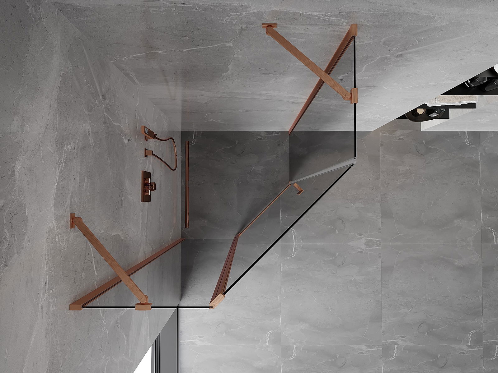 Mexen Mist петостенна душ кабина с отварящи се врати 80 х 80 см, прозрачна, четкана мед - 8A8-080-080-65-00