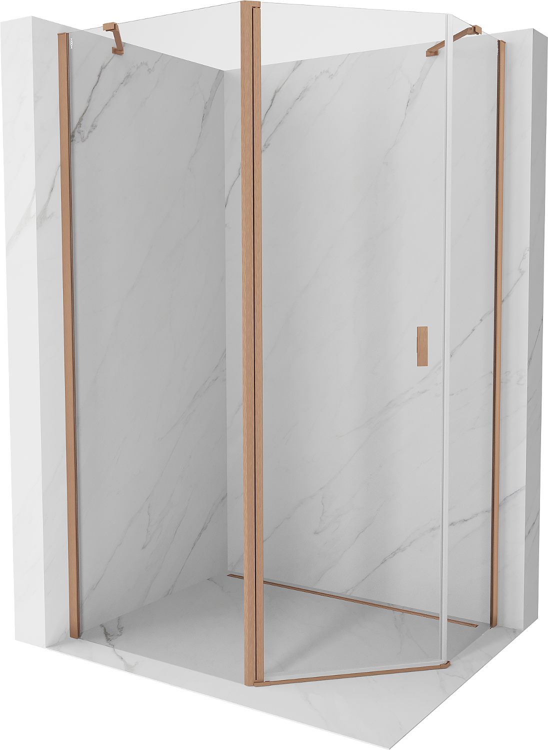 Mexen Mist петстенна асиметрична отваряща се душ кабина 90 x 80 см, прозрачна, четкана мед - 8A8-090-080-65-00