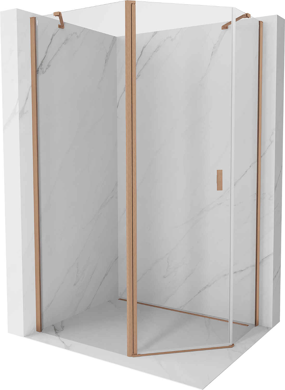 Mexen Mist асиметрична петостенна душ кабина с врати 100 x 80 cm, прозрачен, четкана мед - 8A8-100-080-65-00