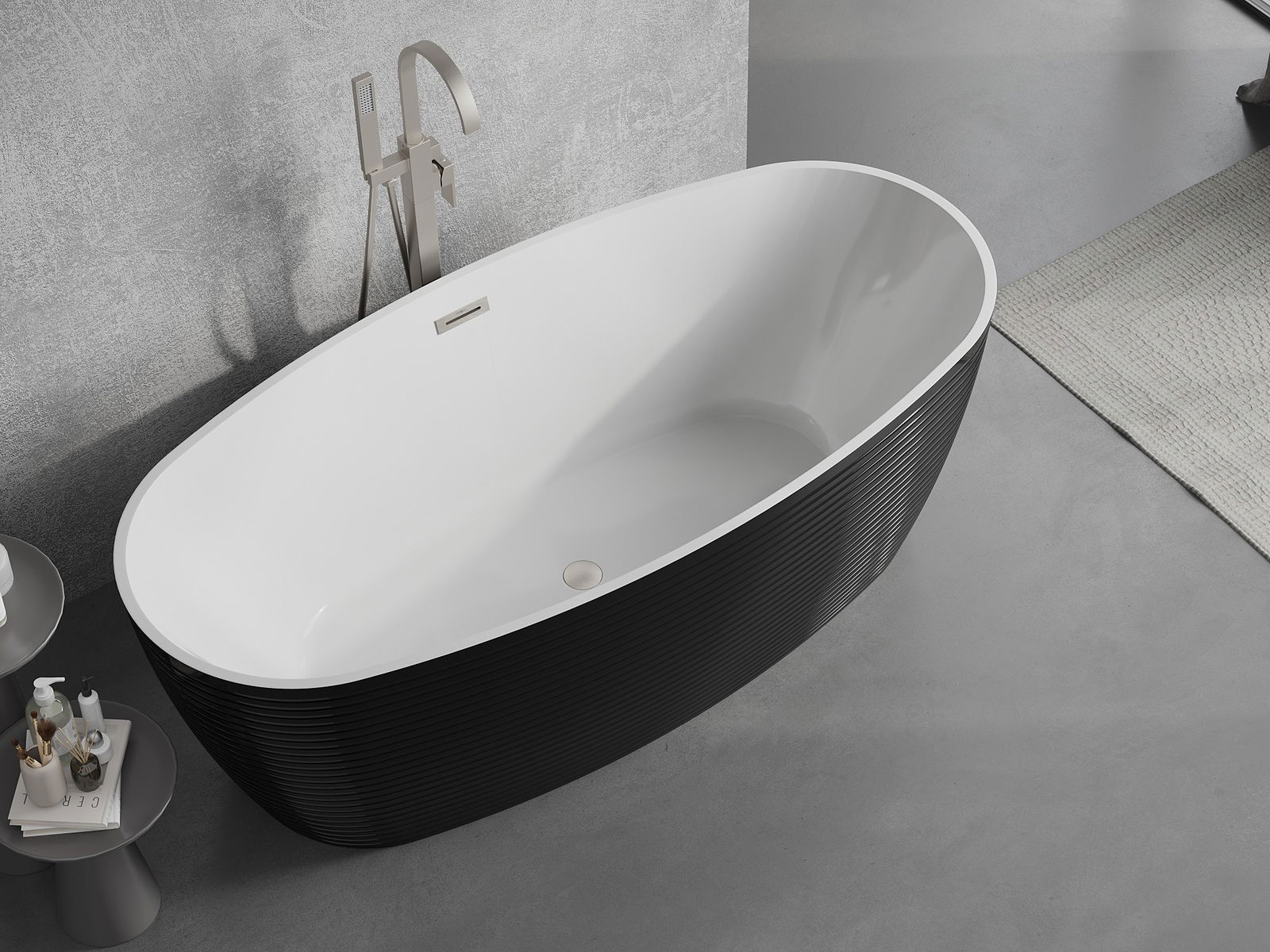 Това е модерен материал, който съчетава елегантен вид с висока издръжливост. Устойчив е на механични повреди, лесен за почистване и приятен на допир. Прозрачната форма и тънкият ръб на ваната ѝ придават лекота и уникален характер, създавайки ефектен акцент в подредбата на банята.
