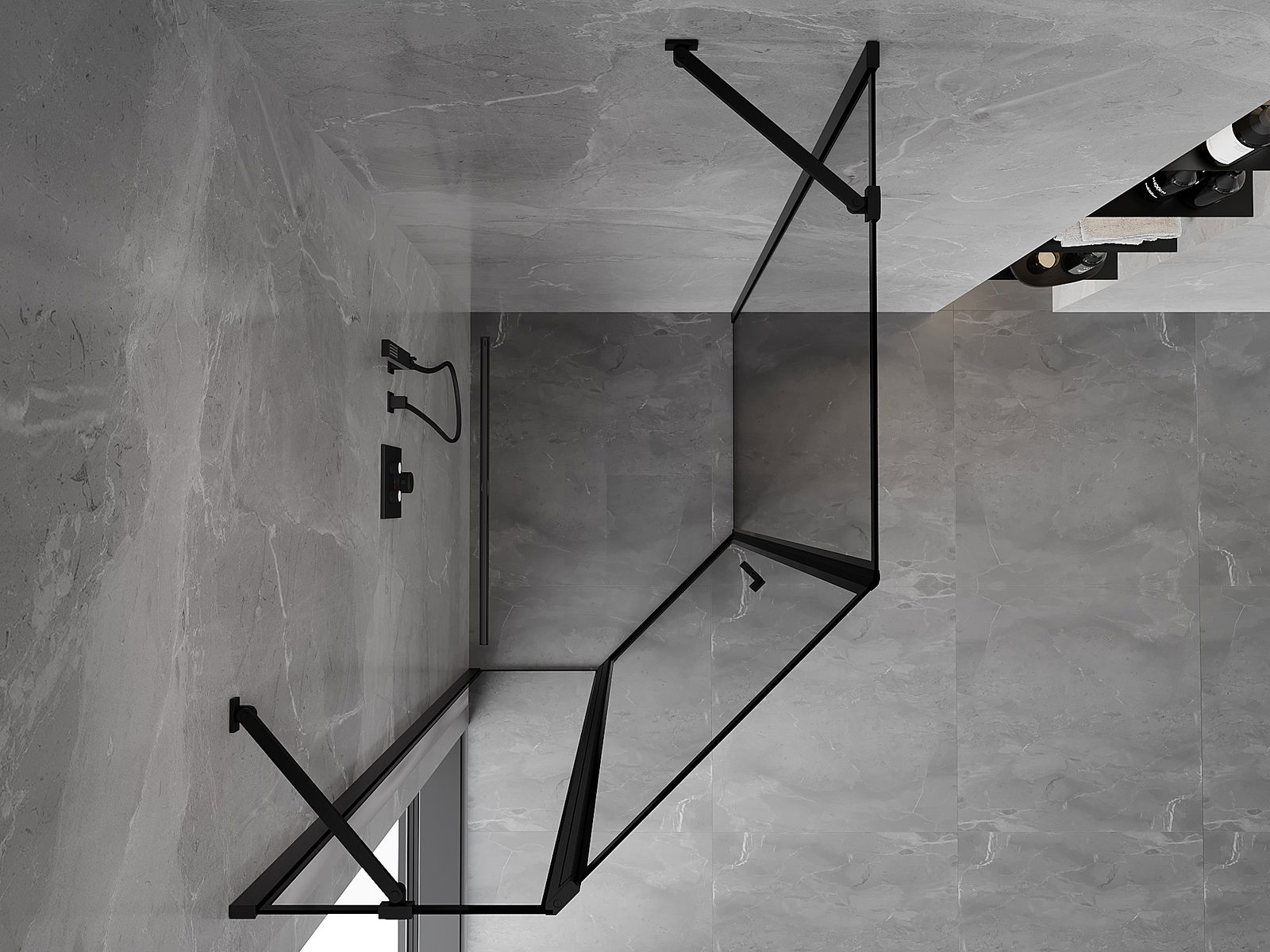 Mexen Mist асиметрична пет-ъгълна душ кабина, отваряща се наляво 90 x 100 см, черна рамка, черна - 8A8-090-100-70-70-L