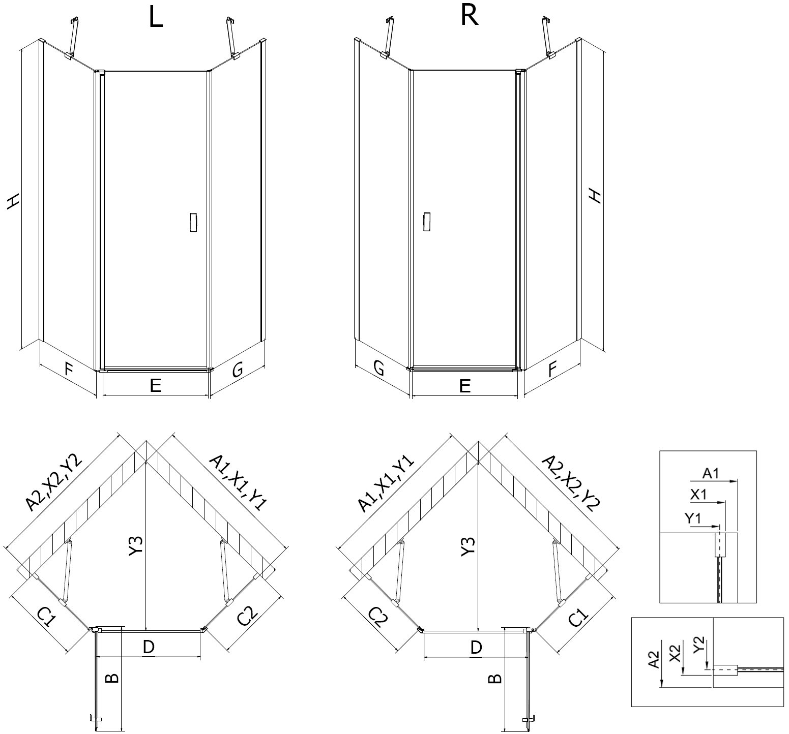 Размер: 80x100 см (дясна врата 80 см, стена 100 см)