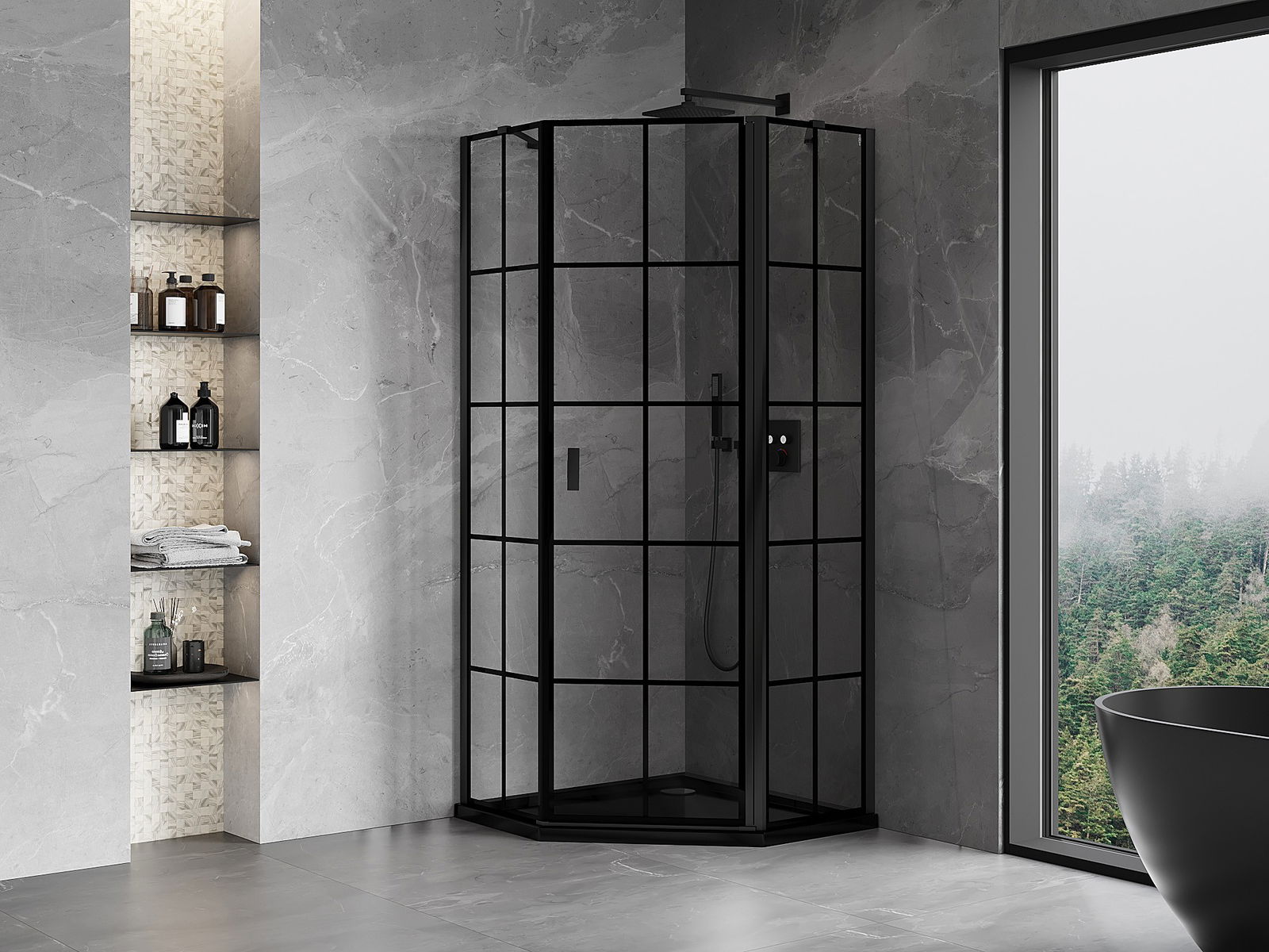 Удобната и практична дръжка е изработена от здрав и устойчив метал. Модерната форма в съчетание с покритието, съответстващо на цвета на профилите, придава на цялото модерен и стилен вид, подчертавайки естетиката на всяка баня.