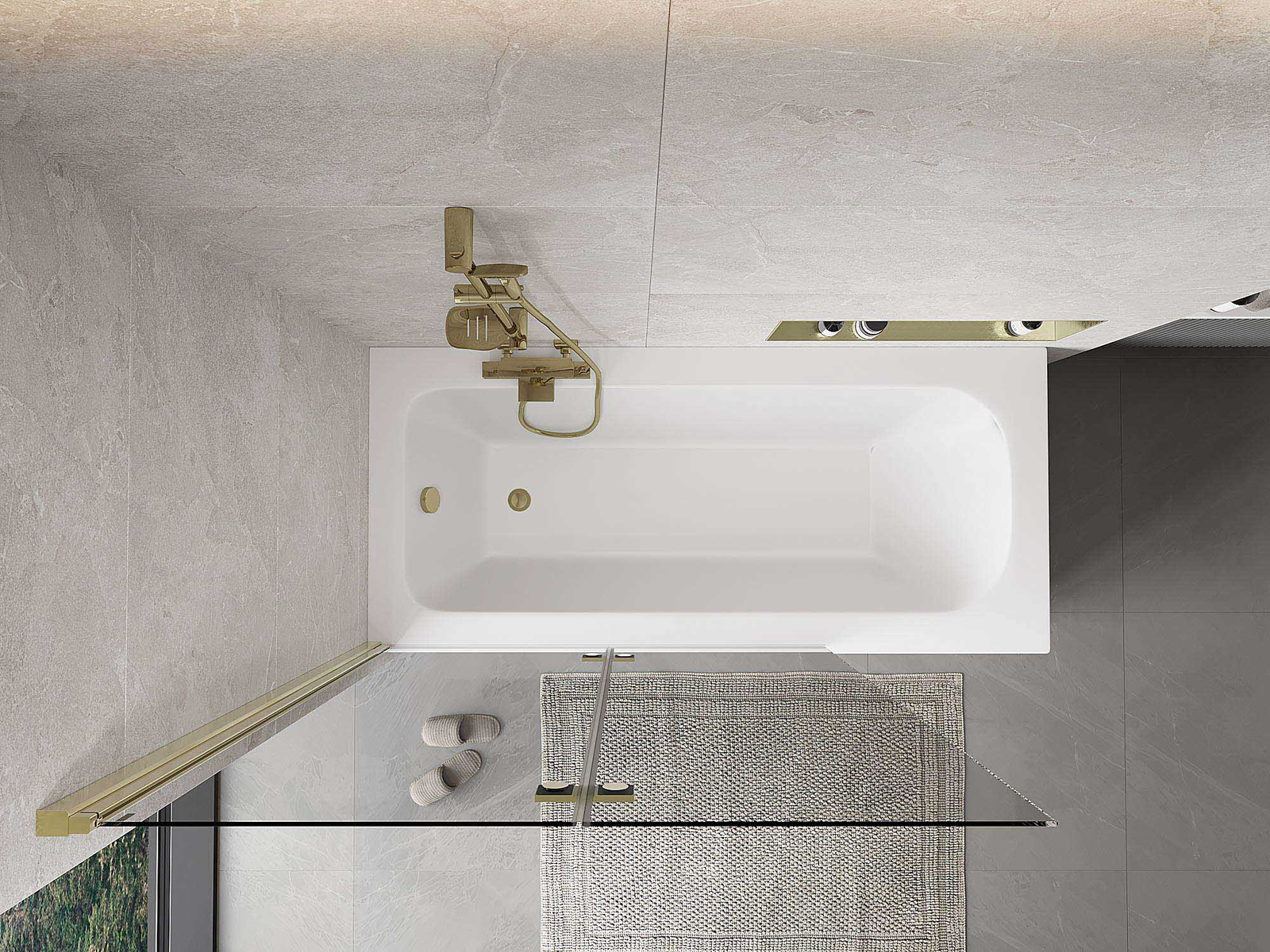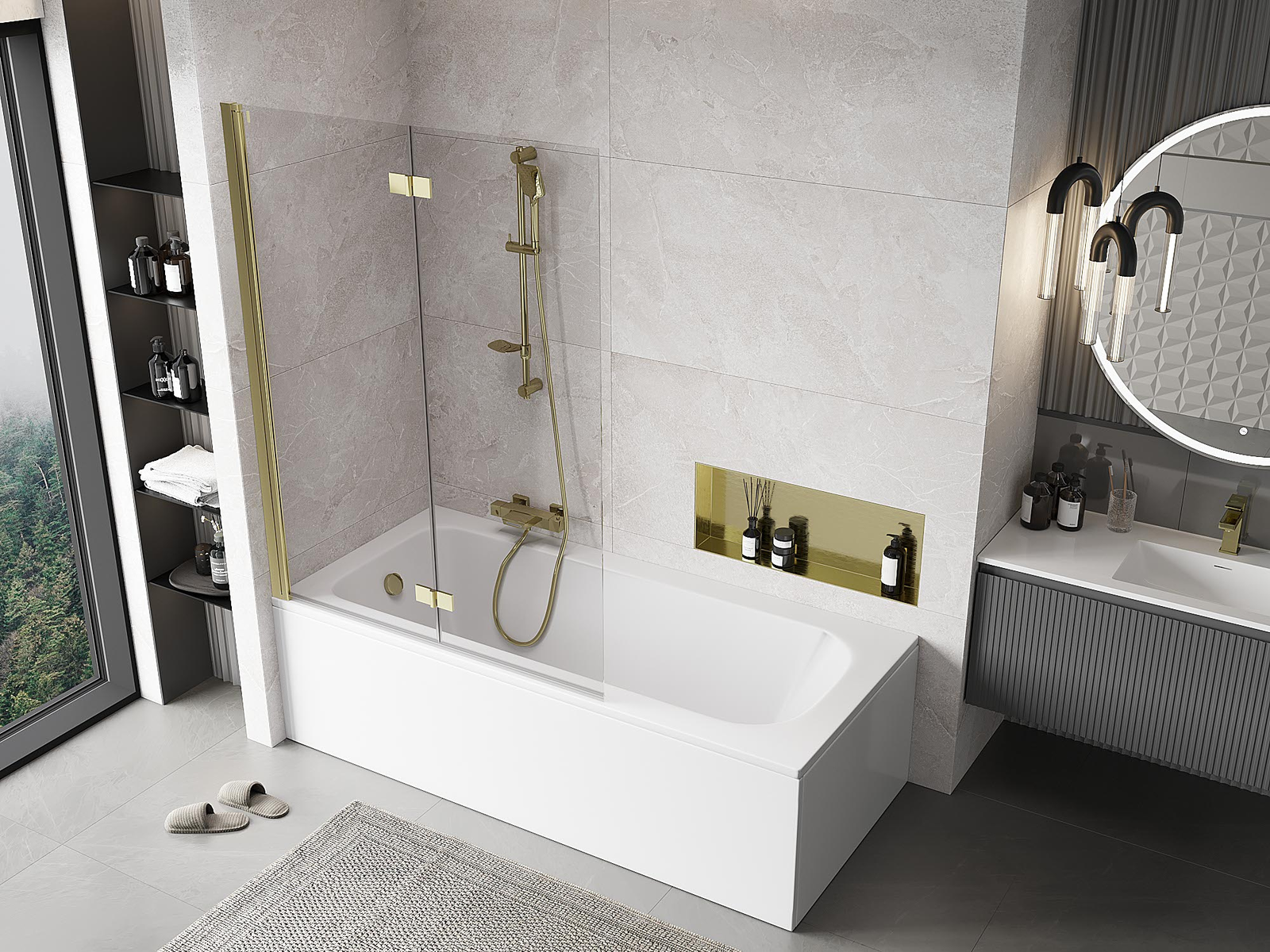 Екран, изработен от две крила с възможност за сгъване. Такова решение позволява да се спести повече пространство в банята и позволява свободното използване на останалото пространство, когато не използваме зоната за къпане.