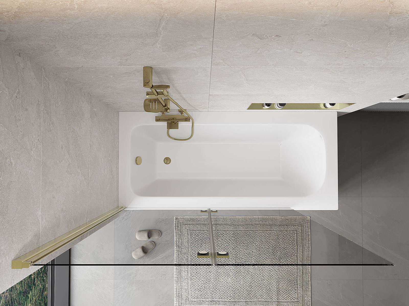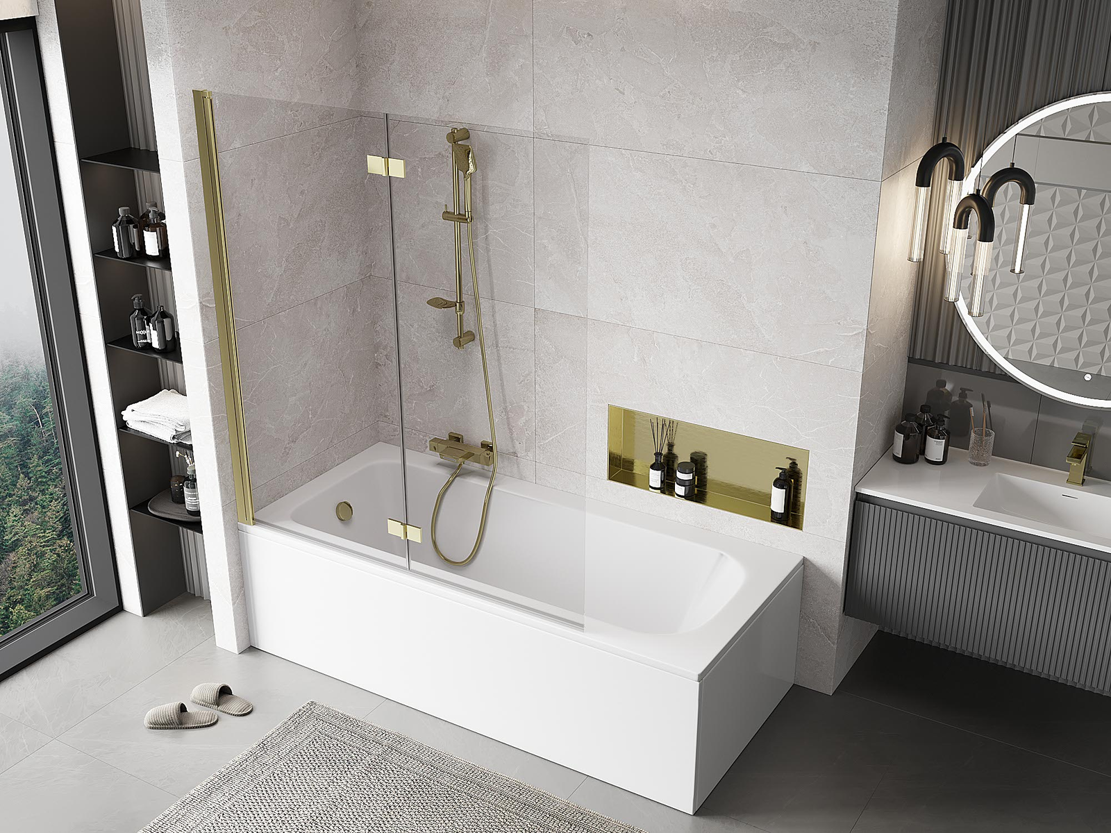 Екран, изработен от две крила с възможност за сгъване. Такова решение позволява да се спести повече пространство в банята и позволява свободното използване на останалото пространство, когато не използваме зоната за къпане.
