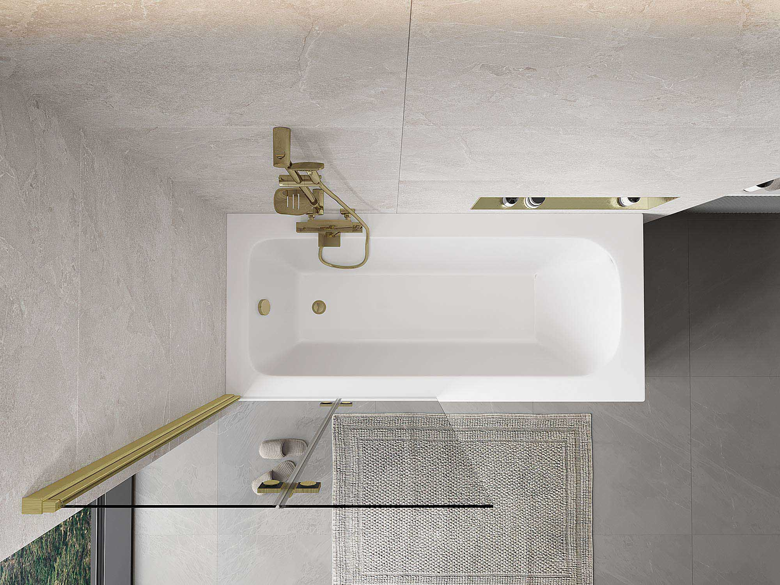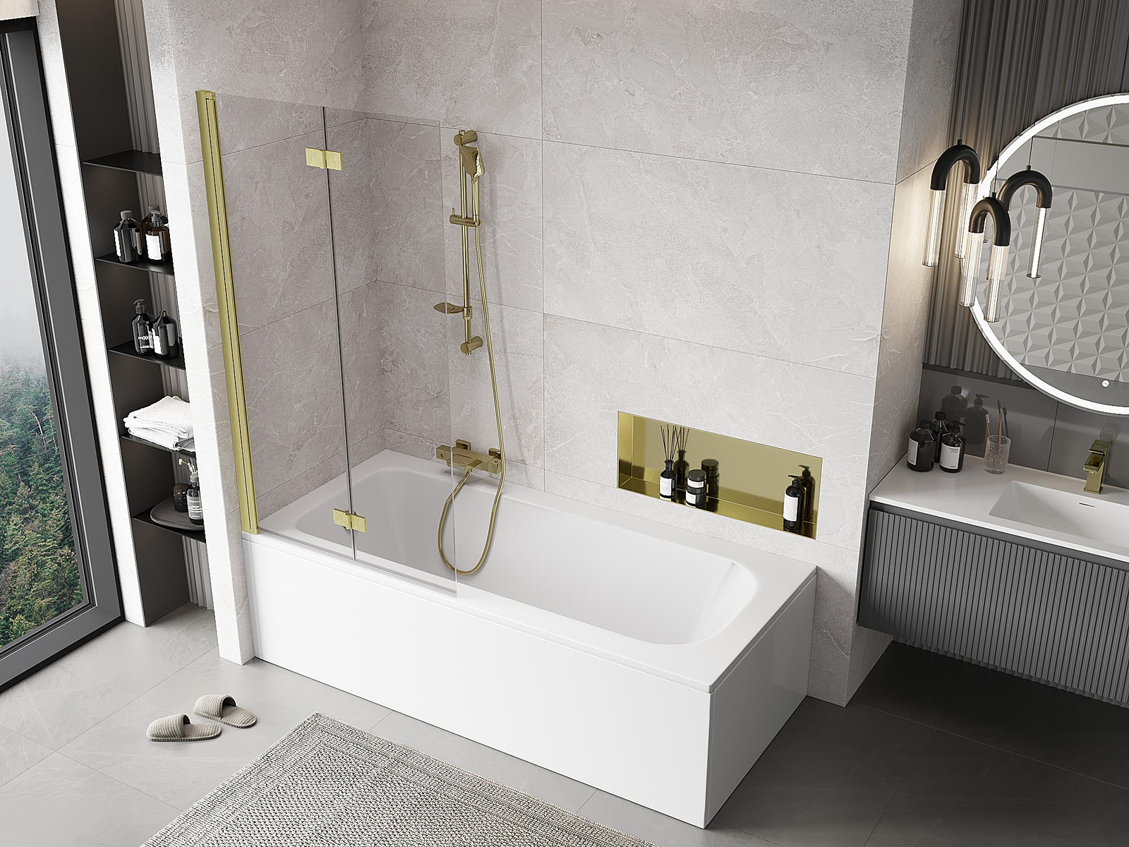Екран, изработен от две крила с възможност за сгъване. Такова решение позволява да се спести повече пространство в банята и позволява свободното използване на останалото пространство, когато не използваме зоната за къпане.