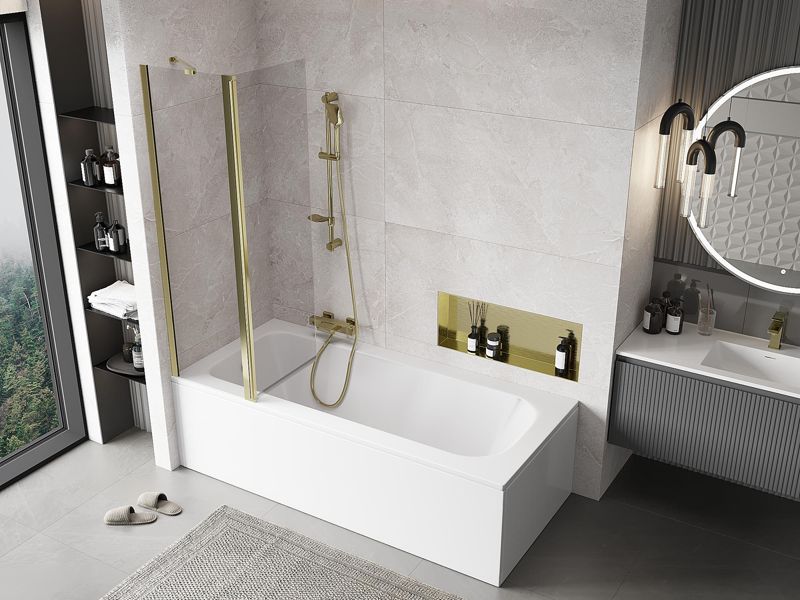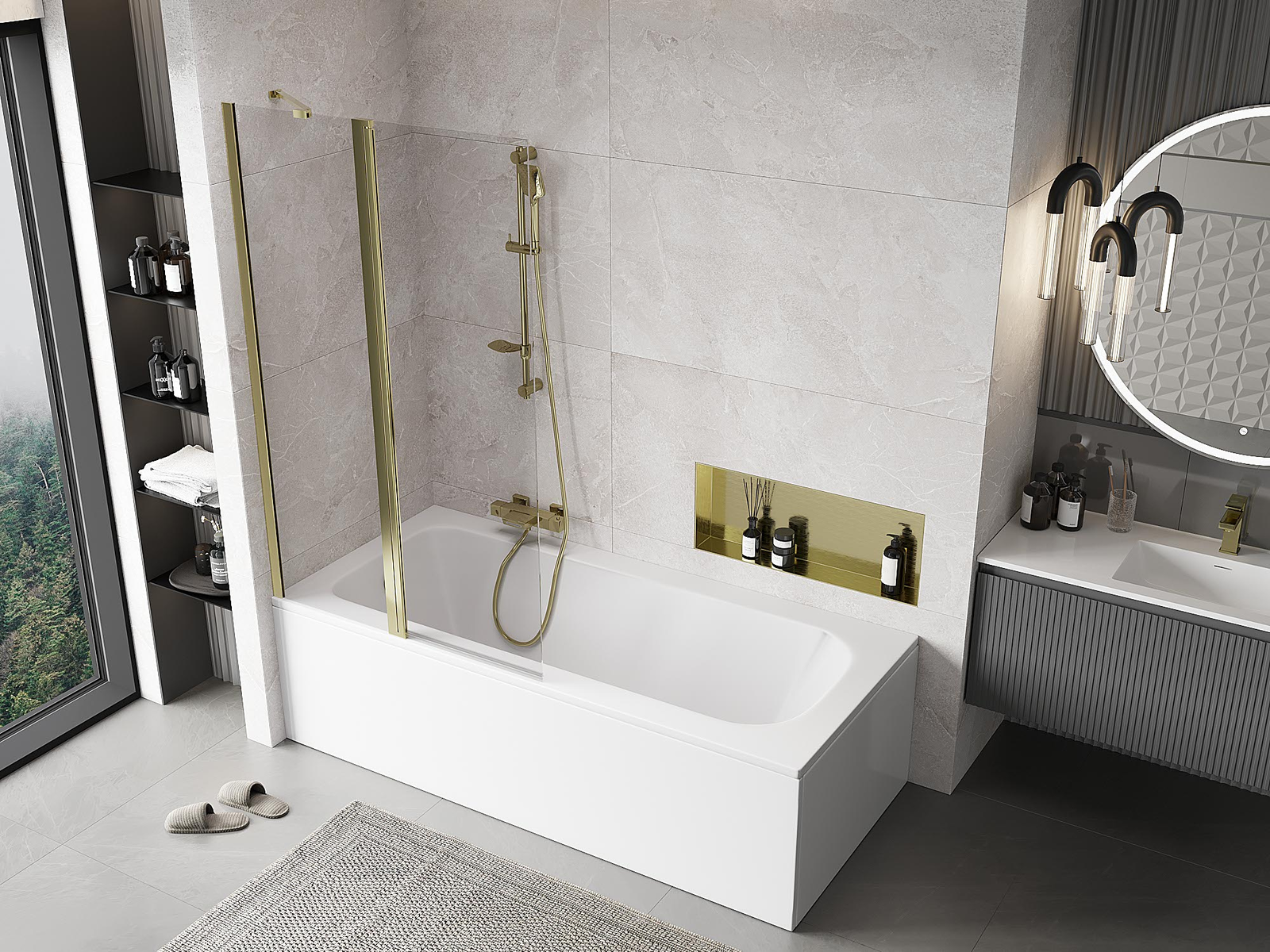 Mexen Mist параван за вана 2-крилен 100 x 150 см, прозрачен, златист - 8A9-100-011-50-00