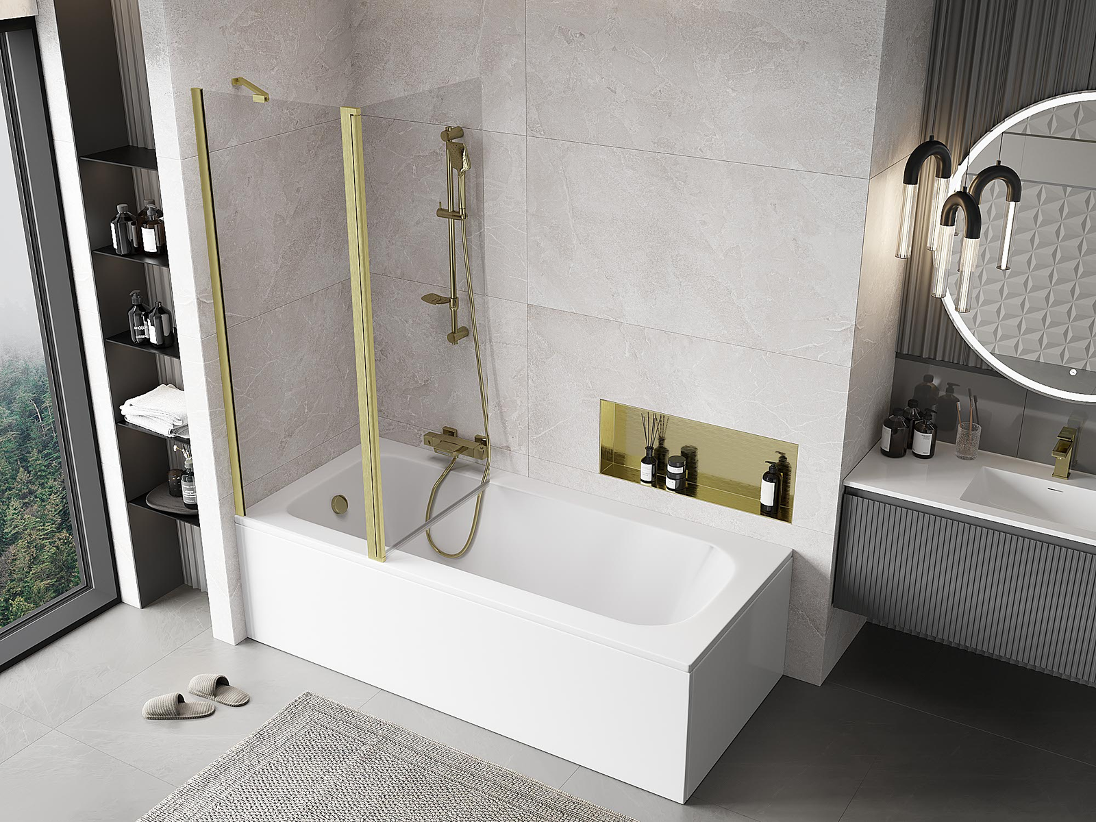 Mexen Mist параван за вана 2-крилен 130 x 150 см, прозрачен, златен мат - 8A9-130-011-55-00