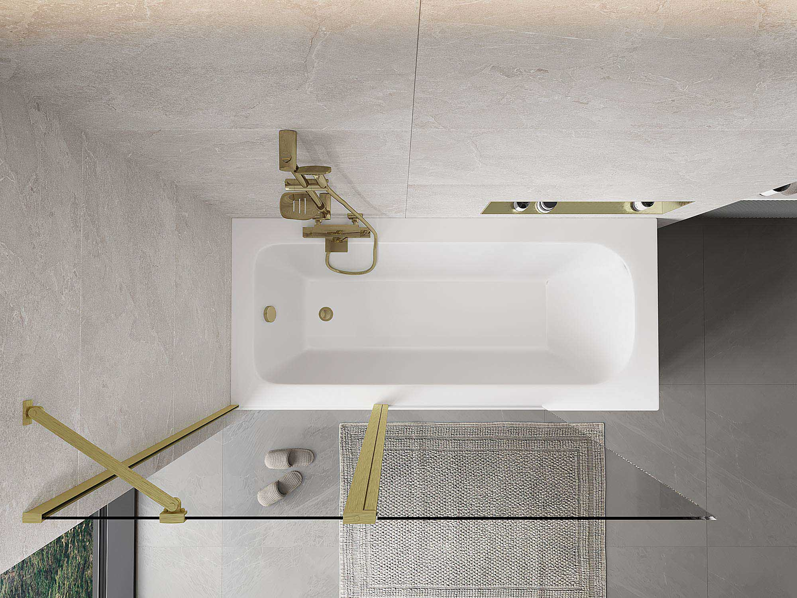 Екран, изработен от две крила с възможност за сгъване. Такова решение позволява да се спести повече пространство в банята и позволява свободното използване на останалото пространство, когато не използваме зоната за къпане.