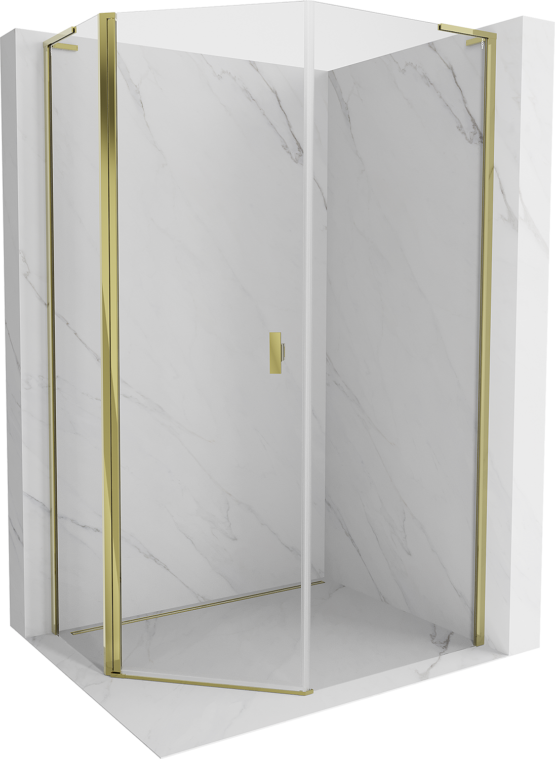 Mexen Mist L асиметрична петостенна душ кабина с отваряща се врата 80 х 90 см, прозрачна, златна - 8A8L-080-090-50-00