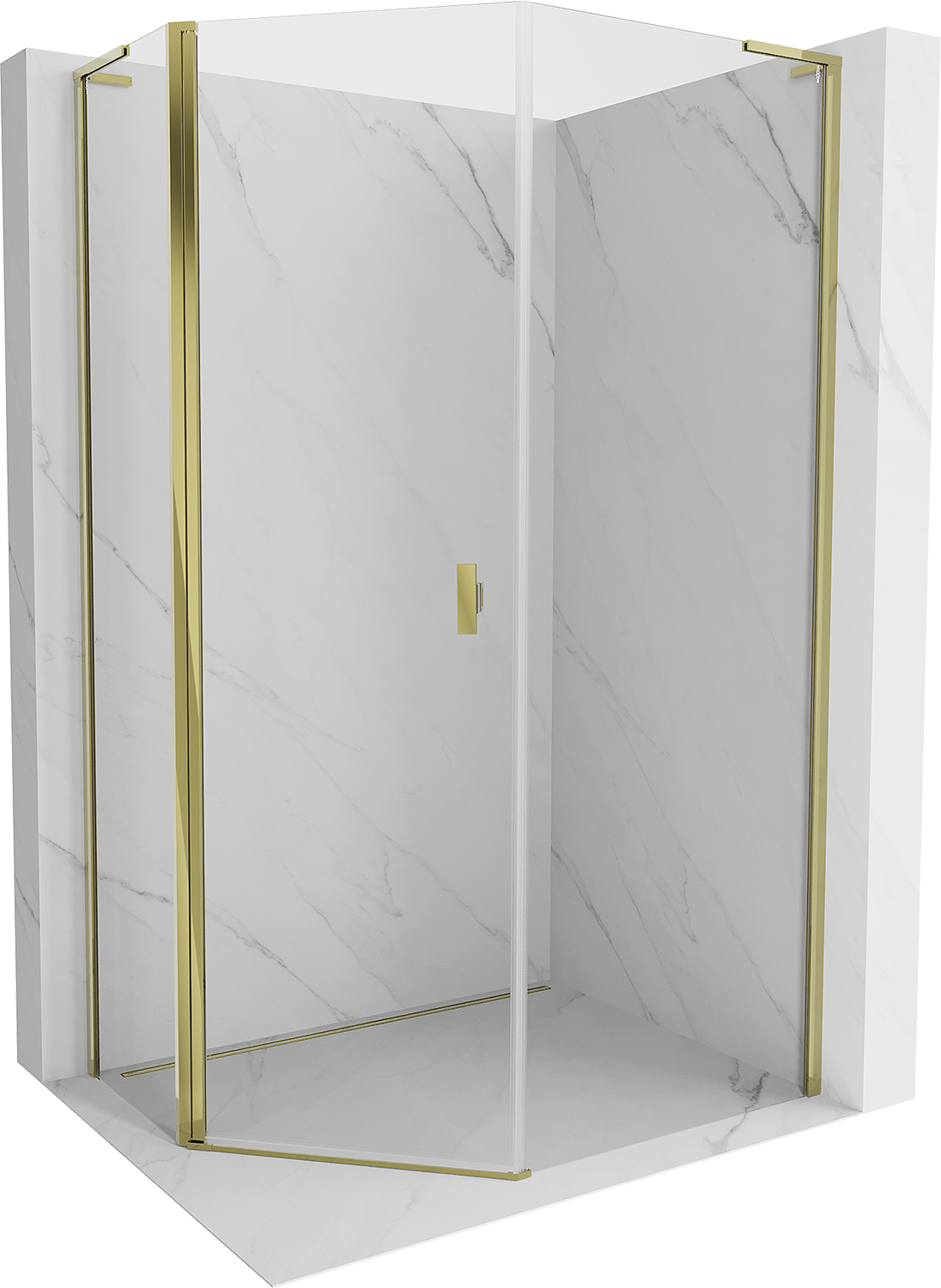 Mexen Mist L асиметрична петстранна душ кабина с отваряща се врата 80 x 100 см, прозрачна, златна - 8A8L-080-100-50-00