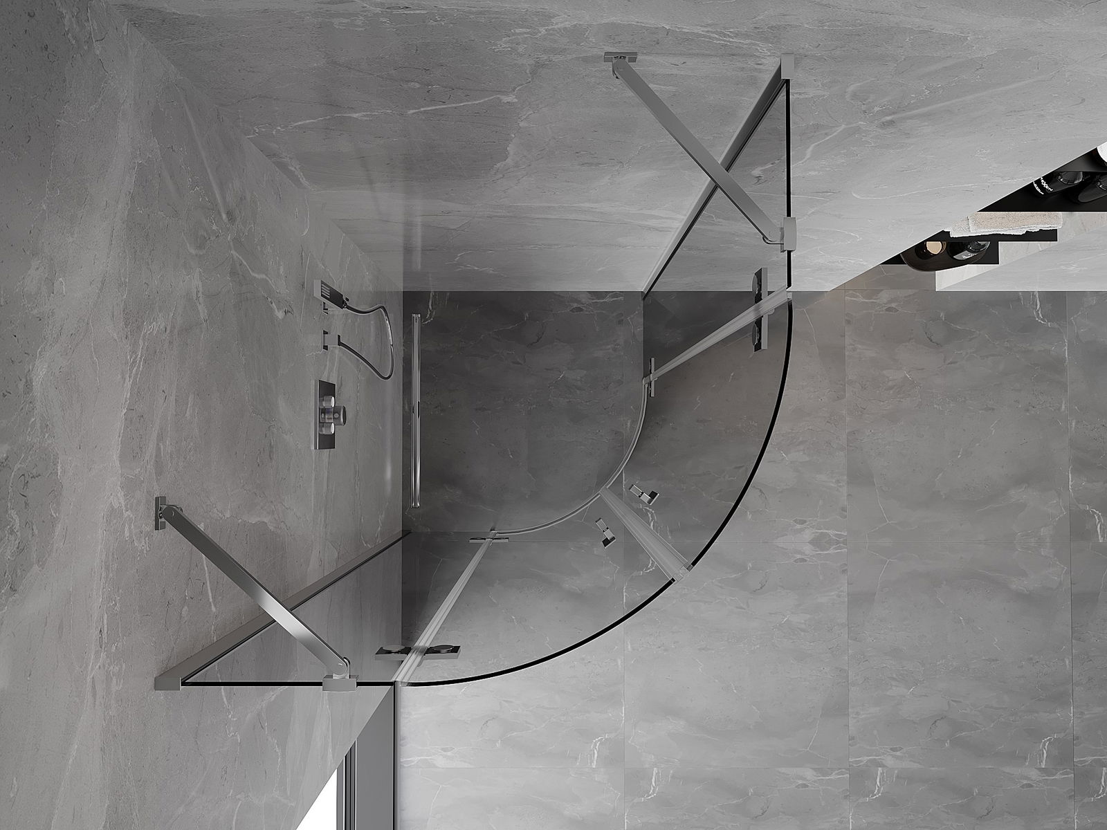 Удобната и практична дръжка е изработена от здрав и устойчив метал. Модерната форма в съчетание с покритието, съответстващо на цвета на профилите, придава на цялото модерен и стилен вид, подчертавайки естетиката на всяка баня.