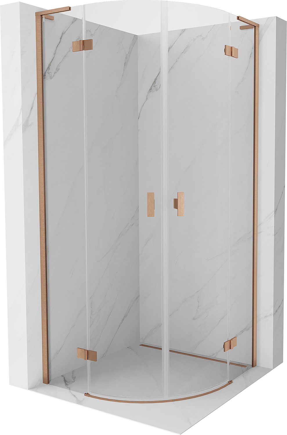 Mexen Mist L полукръгла душ кабина с отварящи се врати 100 x 100 см, прозрачна, матирана мед - 8A33L-100-100-65-00