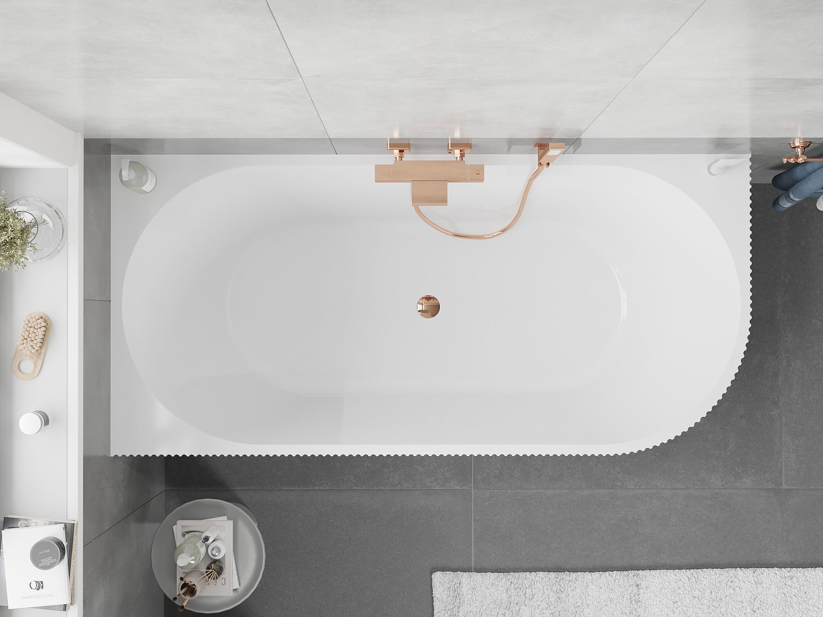 Това е модерен материал, който съчетава елегантен вид с висока издръжливост. Устойчив е на механични повреди, лесен за почистване и приятен на допир. Прозрачната форма и тънкият ръб на ваната ѝ придават лекота и уникален характер, създавайки ефектен акцент в подредбата на банята.