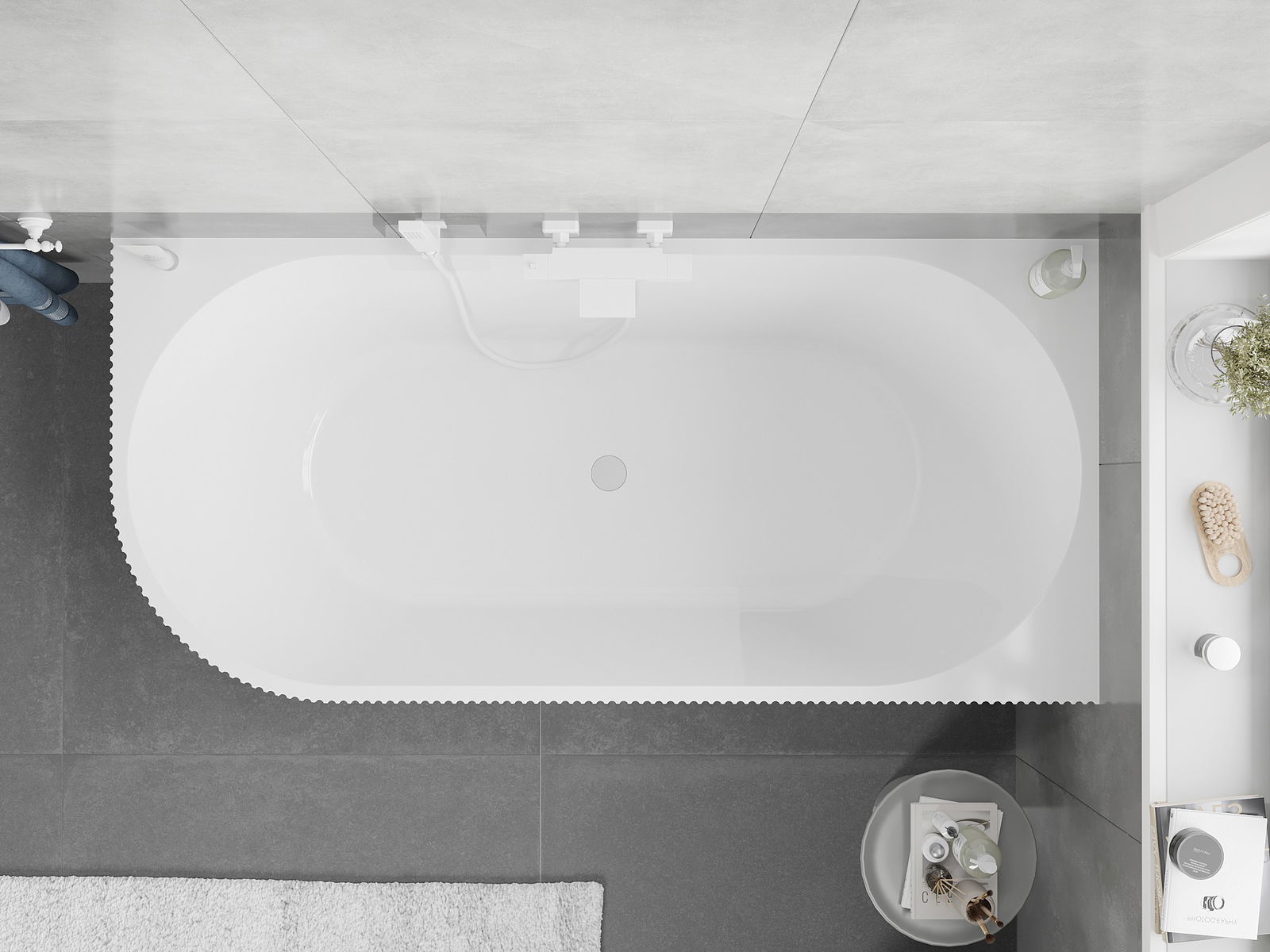 Mexen Silo свободно стояща ъглова вана, дясна оребрена 150 x 75 см, бяла, бял