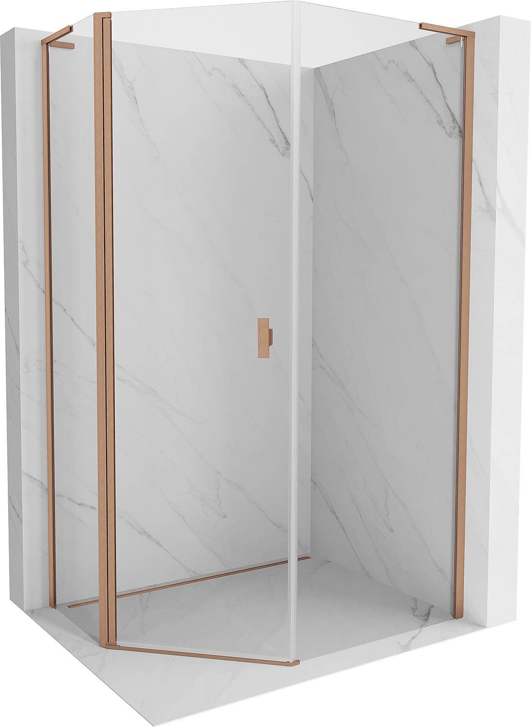 Mexen Mist L асиметрична петоъгълна душ кабина с отваряща се врата 80x90 см, прозрачна, четкована мед - 8A8L-080-090-65-00