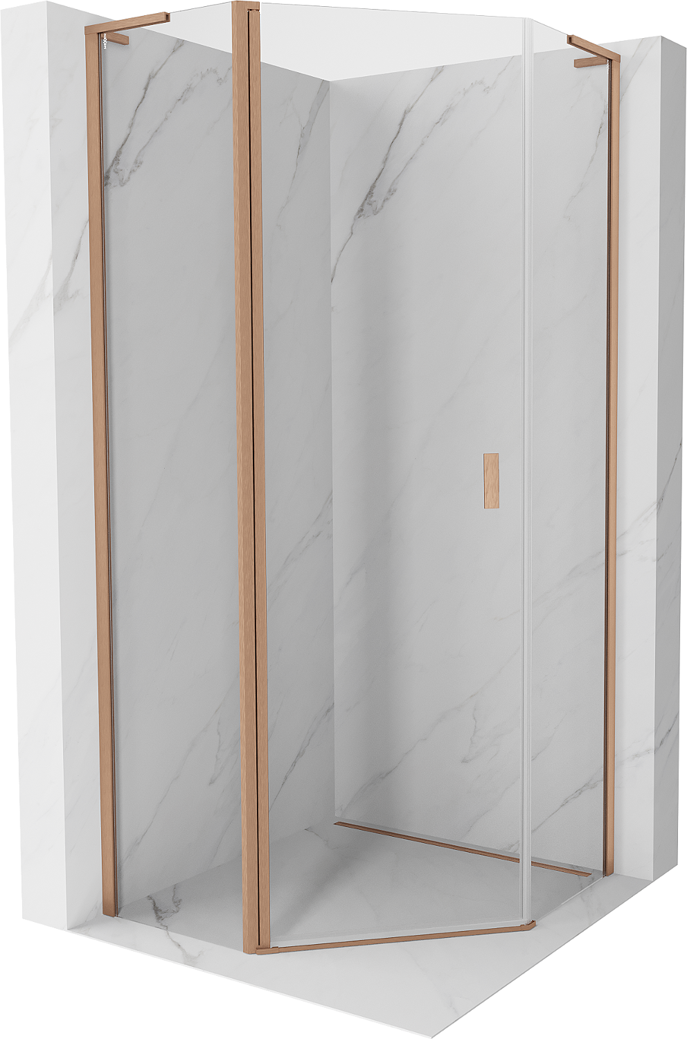 Mexen Mist L петостенна душ кабина с отварящи се врати 90 x 90 cm, прозрачна, четкана мед - 8A8L-090-090-65-00