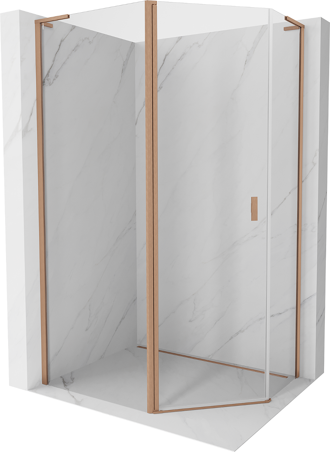 Mexen Mist L асиметрична петостенна душ кабина с люлееща се врата 100x90 см, прозрачна, четкан мед - 8A8L-100-090-65-00