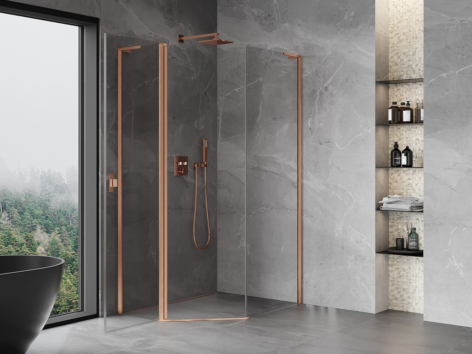 Mexen Mist L асиметрична петостенна душкабина с отваряне 90x100 см, прозрачна, четкана мед - 8A8L-090-100-65-00