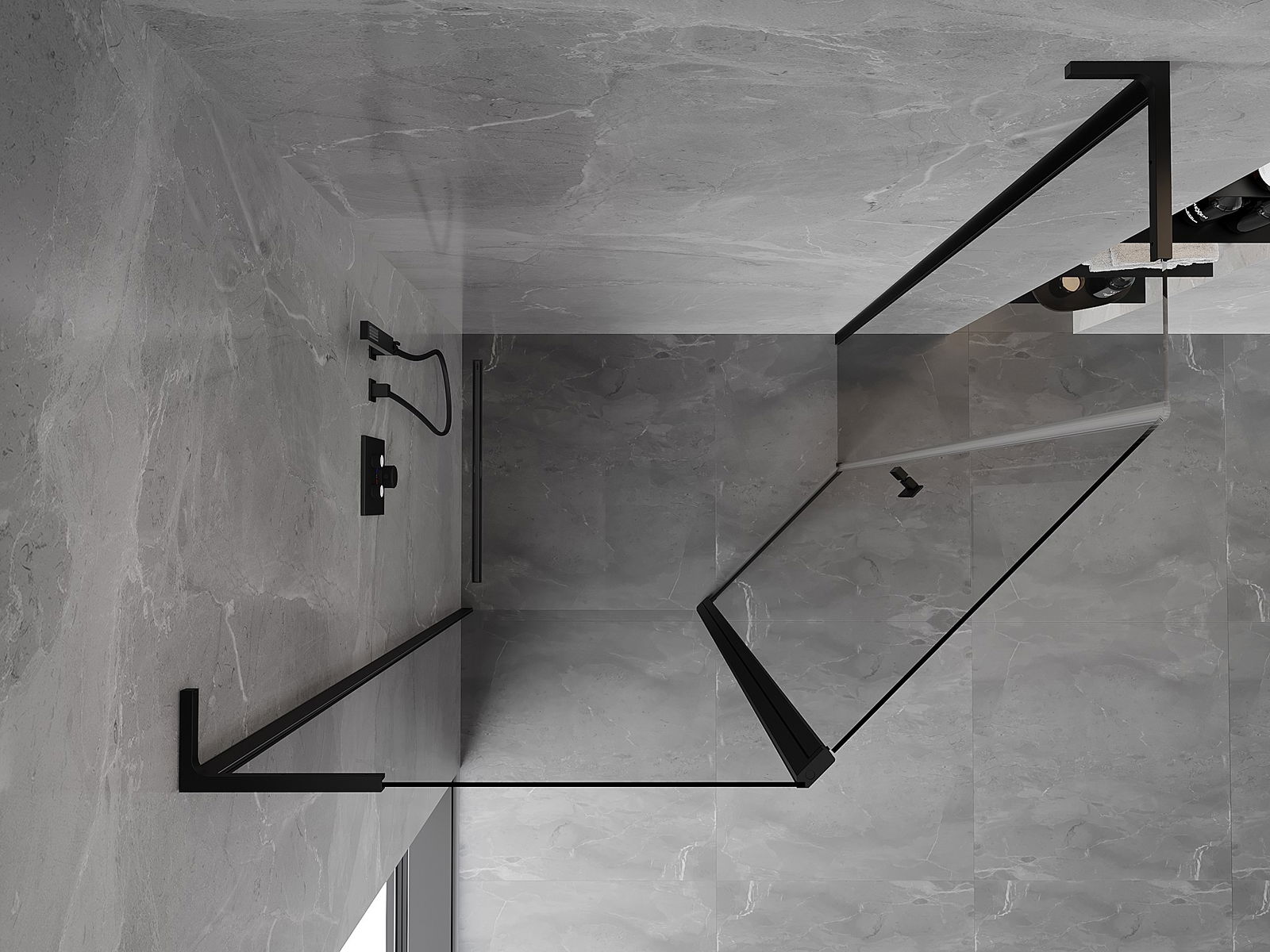 Mexen Mist L асиметрична петоъгълна душ кабина отваряема 90 x 80 cm, прозрачна, черна - 8A8L-090-080-70-00
