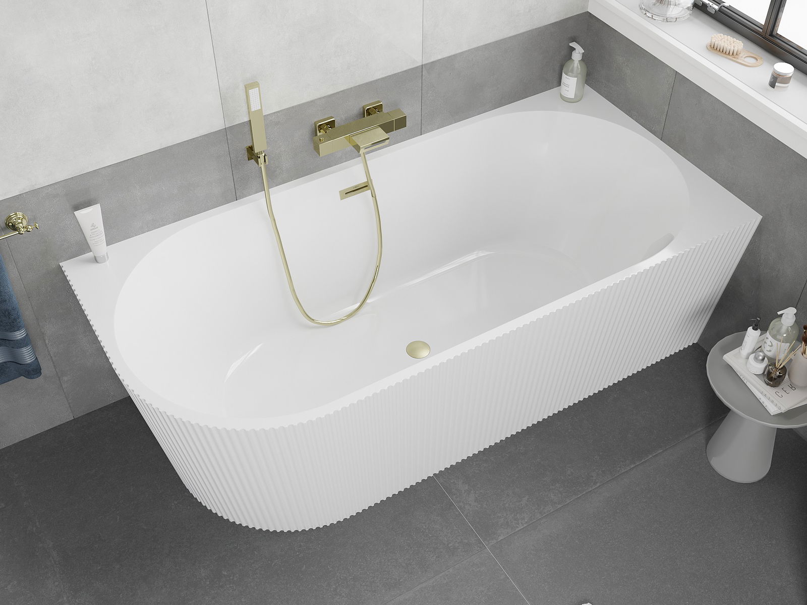 Mexen Silo вълнообразна свободно стояща ъглова дясна рифелована вана 150 x 75