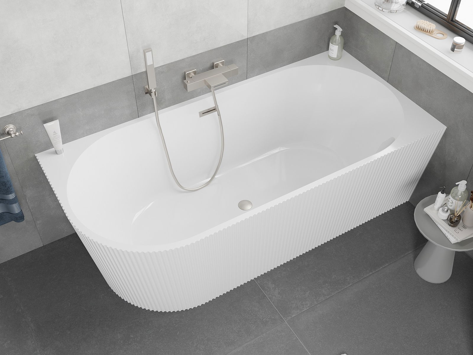 Mexen Silo самостояща ъглова вана дясна с релефи 150 x 75 см, бяла, преливник