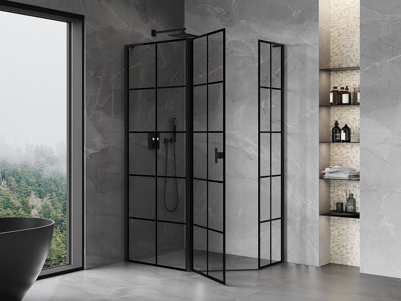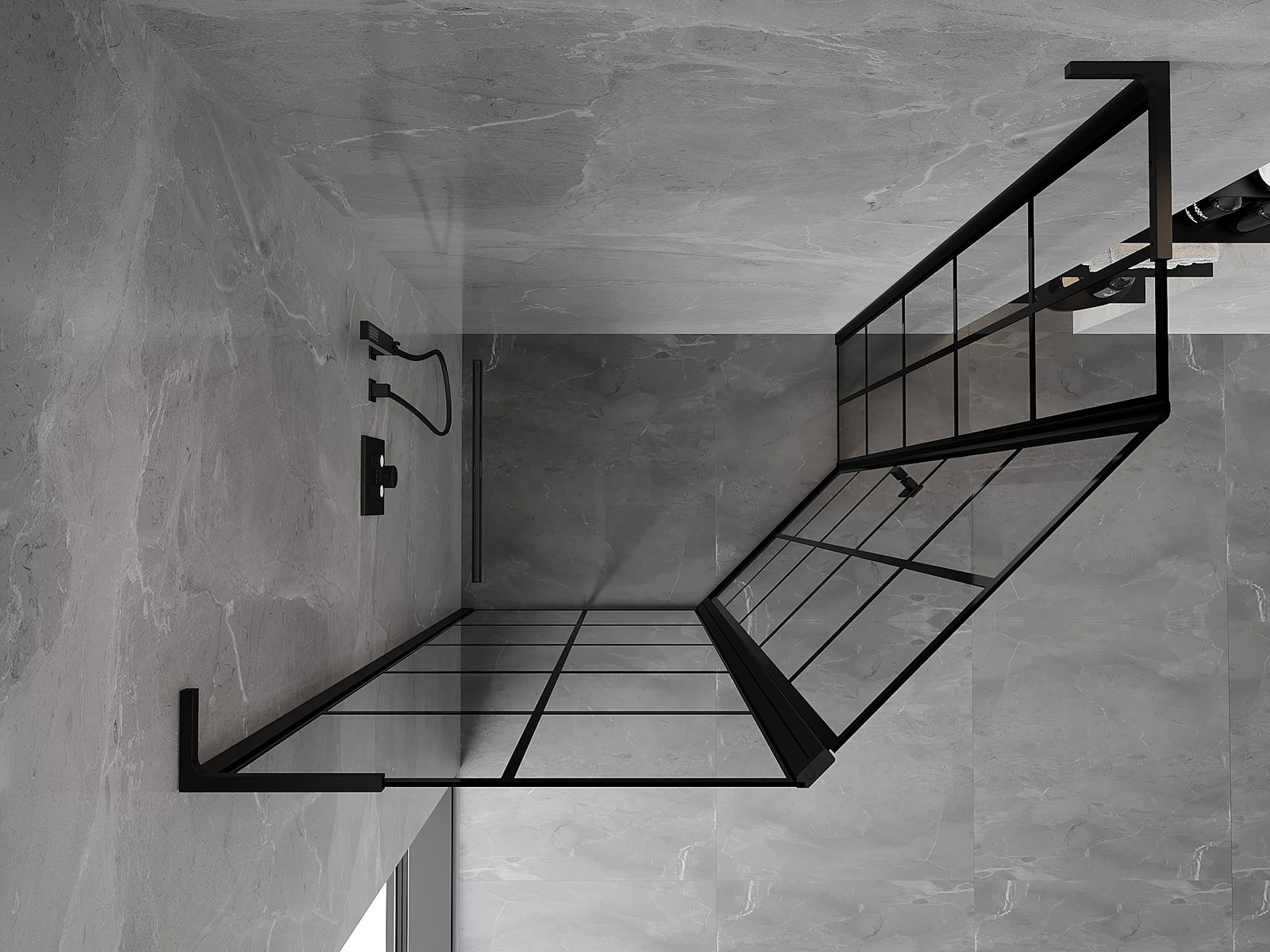 Mexen Mist L петостранна асиметрична душ кабина, отваряема наляво 90 x 80 см, черна решетка, черна - 8A8L-090-080-70-77-L