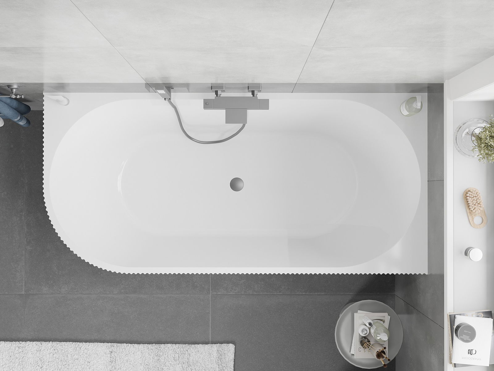 Mexen Silo свободностояща ъглова вана с десен релеф 150 x 75 см, бяла/черна,