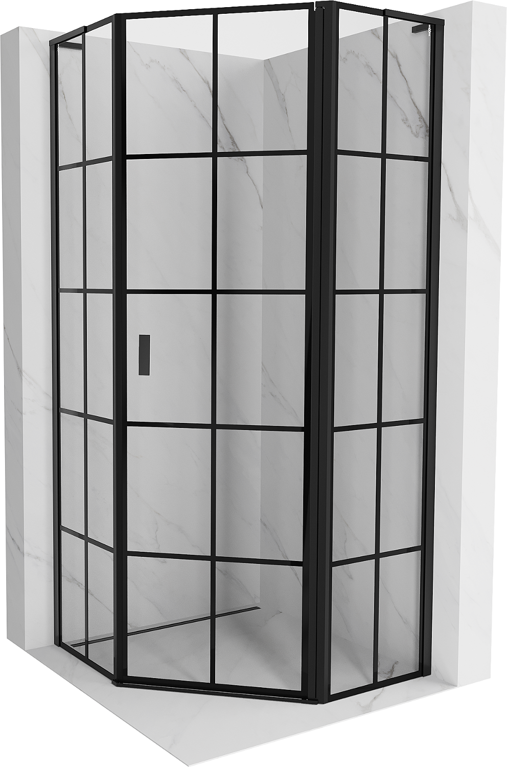 Mexen Mist L петостранна душ кабина с отваряща врата, дясна, 100 x 100 см, черна решетка, черна - 8A8L-100-100-70-77-P