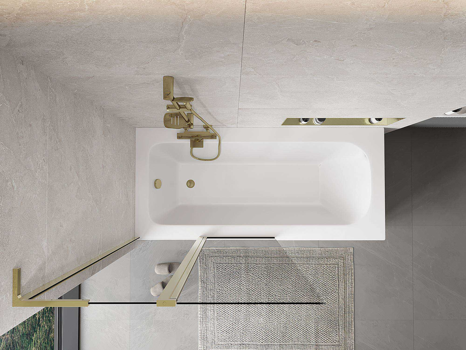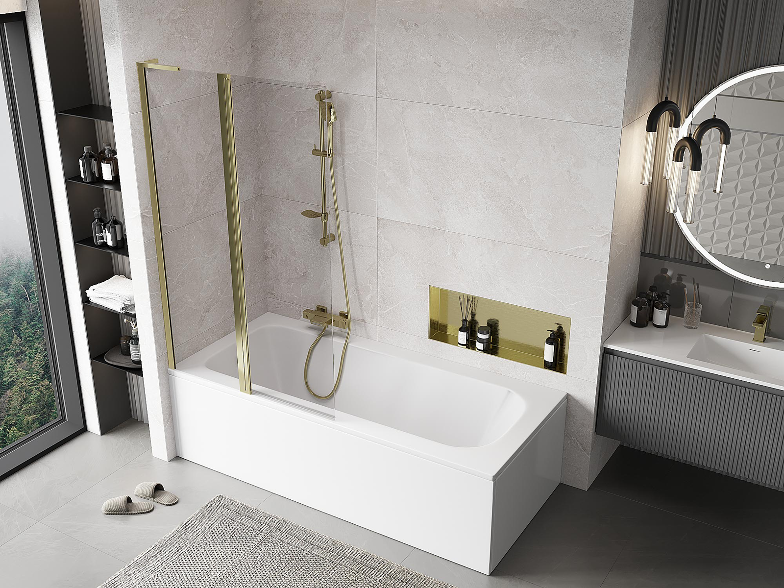 Екран, изработен от две крила с възможност за сгъване. Такова решение позволява да се спести повече пространство в банята и позволява свободното използване на останалото пространство, когато не използваме зоната за къпане.