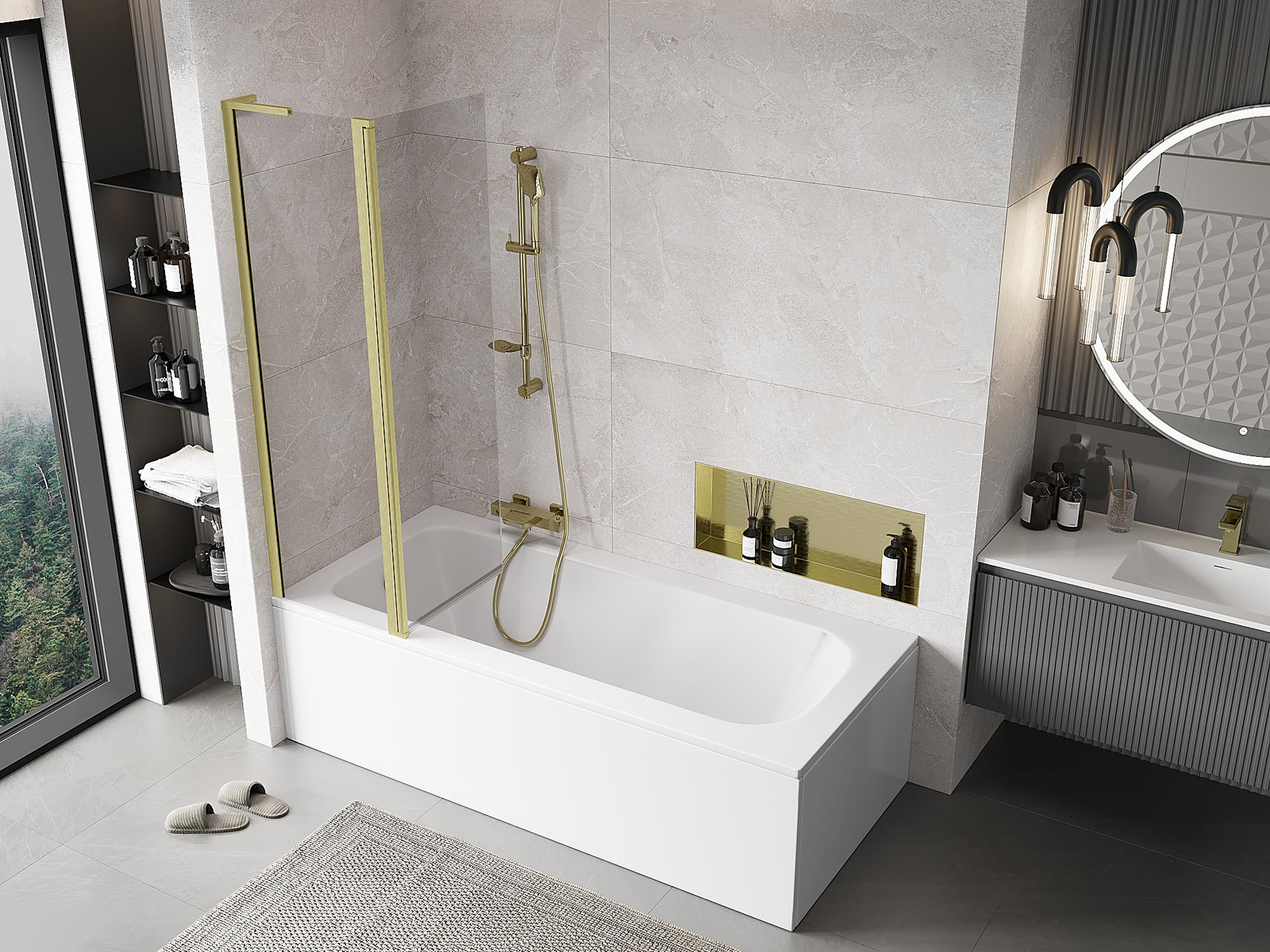 Екран, изработен от две крила с възможност за сгъване. Такова решение позволява да се спести повече пространство в банята и позволява свободното използване на останалото пространство, когато не използваме зоната за къпане.