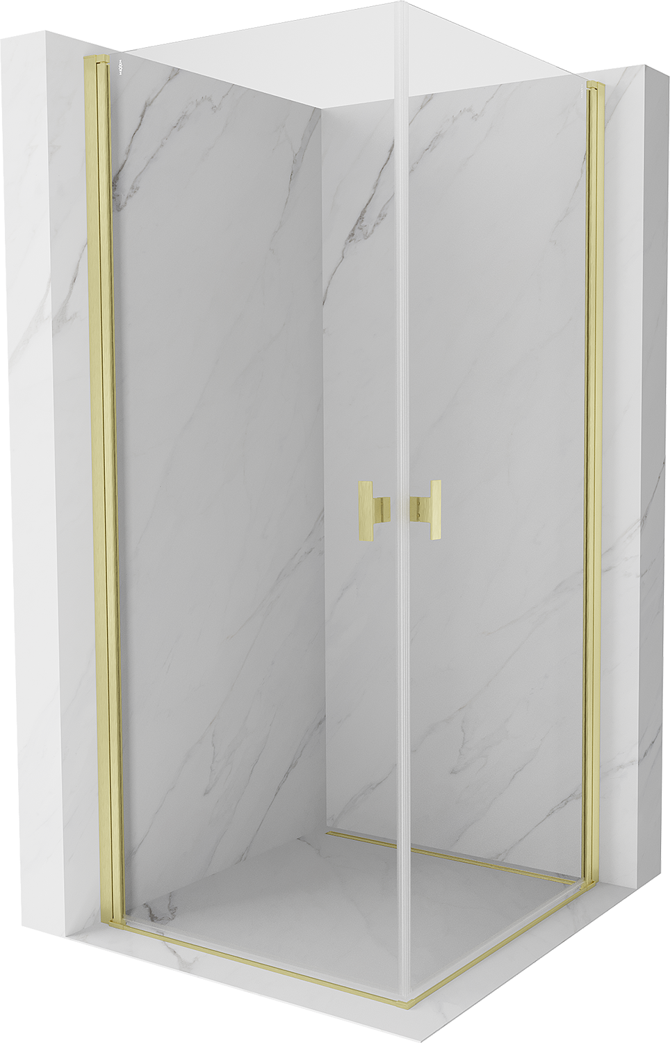 Mexen Mist-B Duo отваряща се душ кабина 75 x 75 см, прозрачна, с четкан златен завършек - 8A2-075-075-55-00