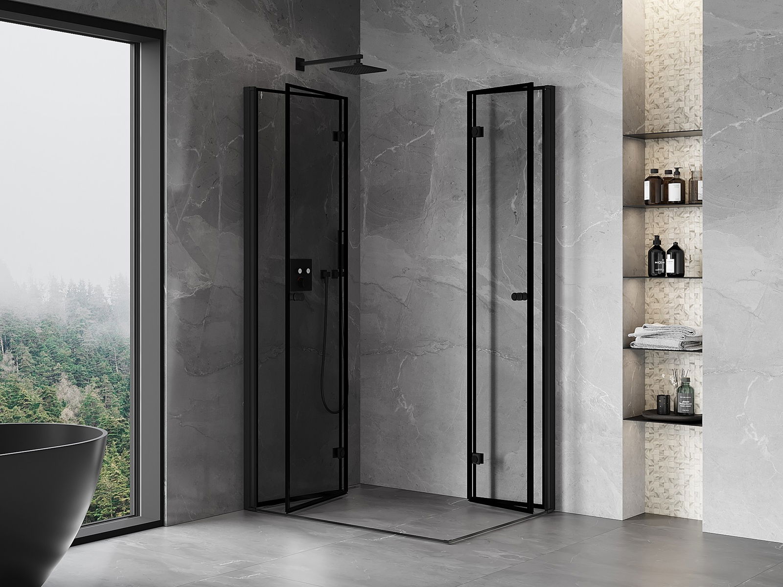 Mexen Mist-F Duo сгъваема душ кабина лява 95 x 85 см, черна рамка, черна - 8A6-095L-085P-70-70