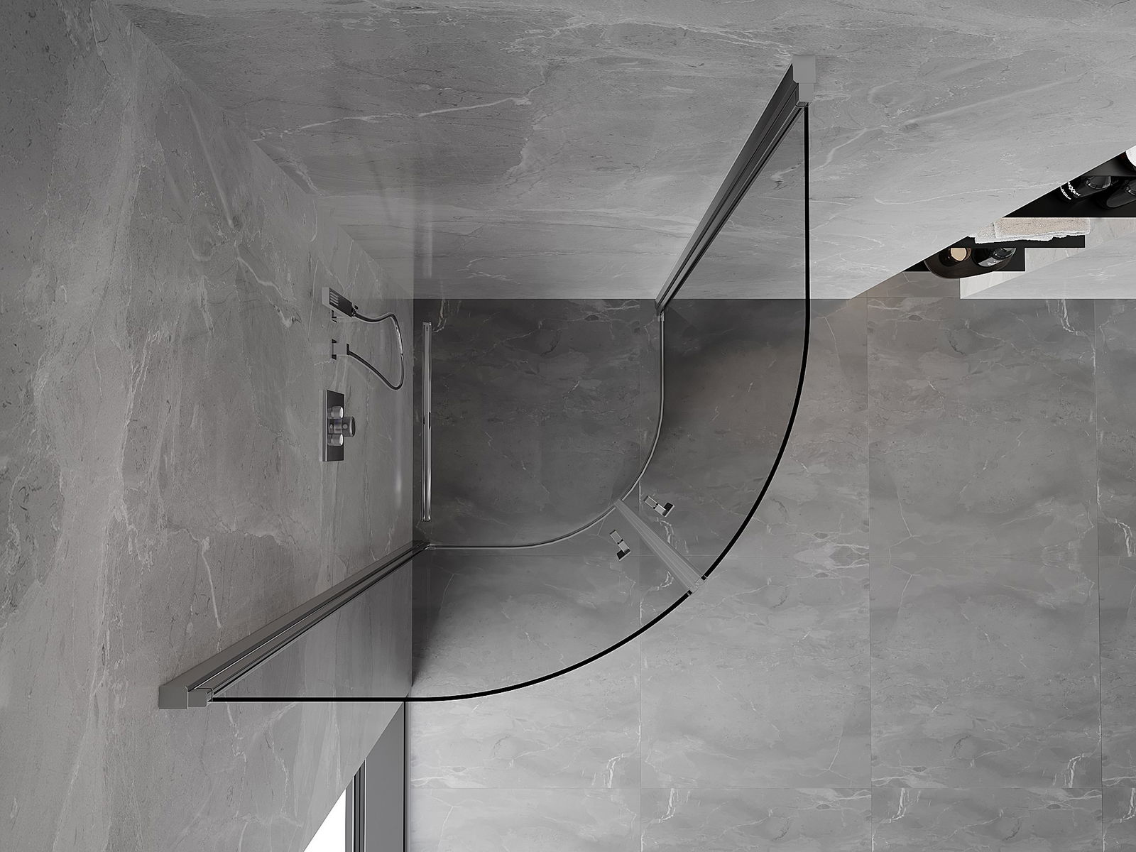 Удобната и практична дръжка е изработена от здрав и устойчив метал. Модерната форма в съчетание с покритието, съответстващо на цвета на профилите, придава на цялото модерен и стилен вид, подчертавайки естетиката на всяка баня.