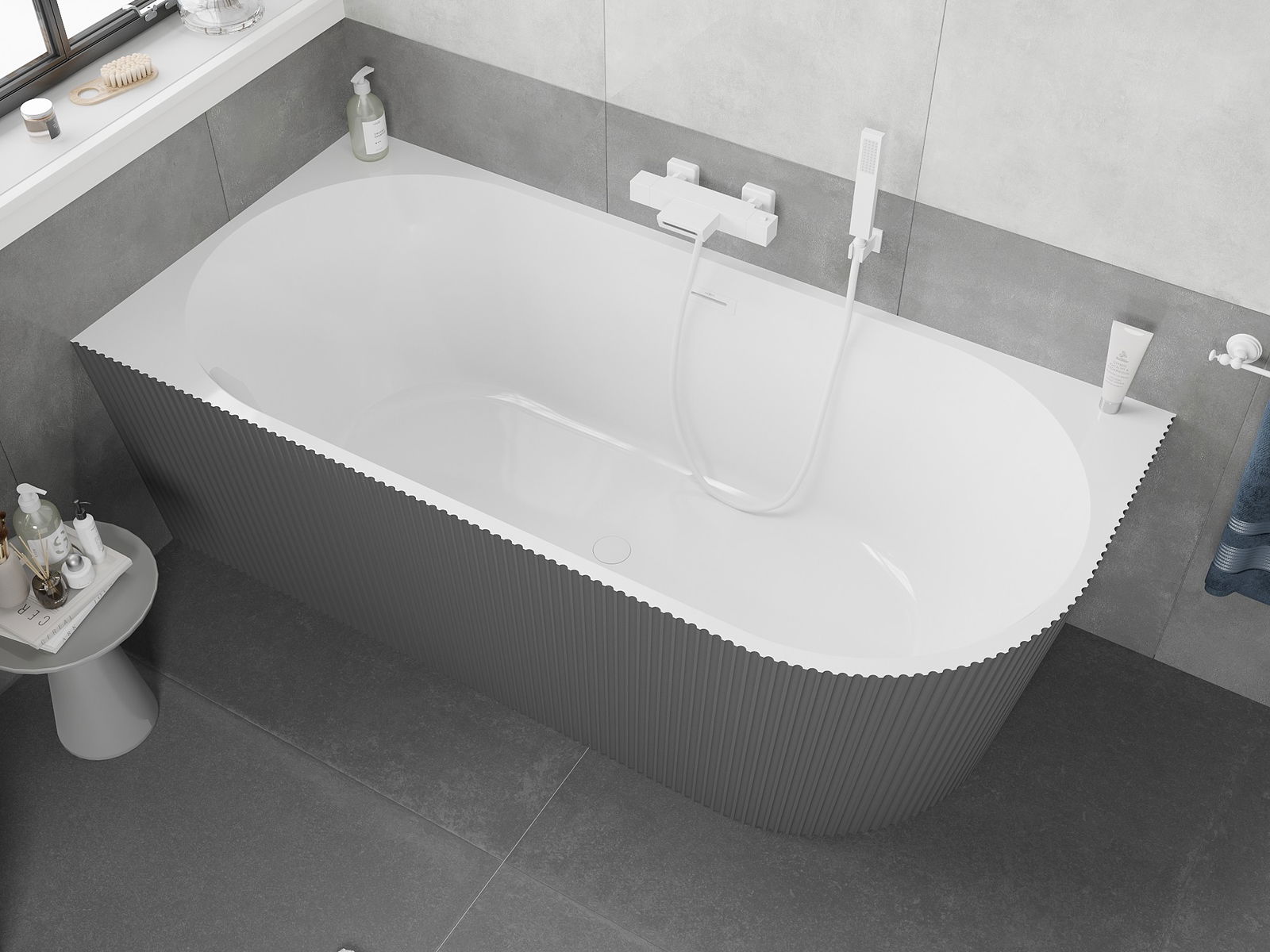 Това е модерен материал, който съчетава елегантен вид с висока издръжливост. Устойчив е на механични повреди, лесен за почистване и приятен на допир. Прозрачната форма и тънкият ръб на ваната ѝ придават лекота и уникален характер, създавайки ефектен акцент в подредбата на банята.