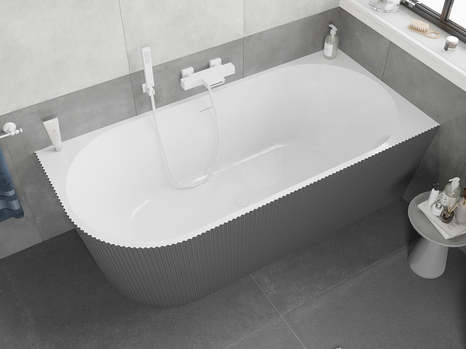 Mexen Silo Свободностояща ъглова вана дясна с гофриране 150 x 75 cm, бяла/сива,