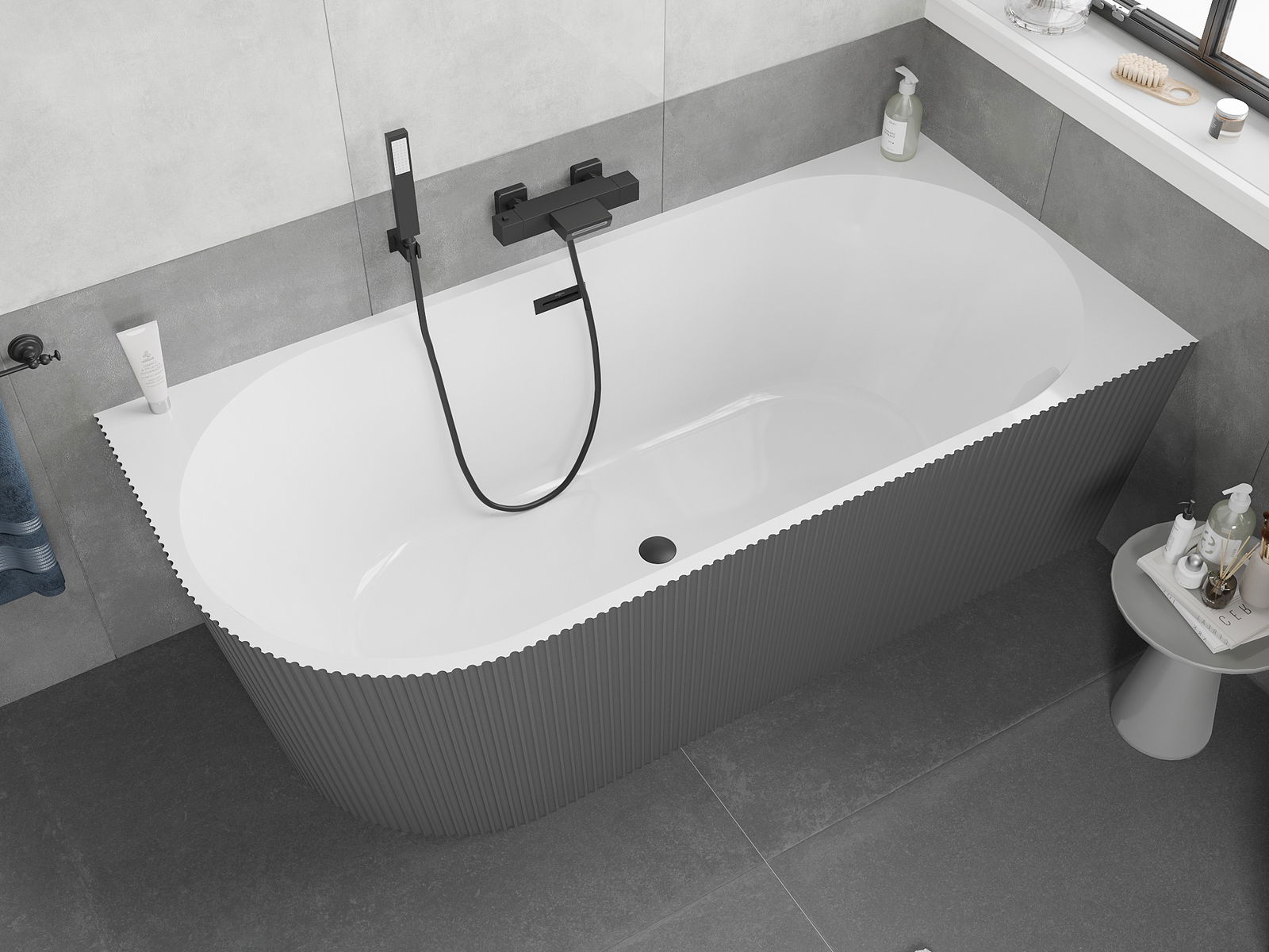Mexen Silo Свободностояща ъглова вана, дясна, оребрена, 150 x 75 см, бяла/сива,