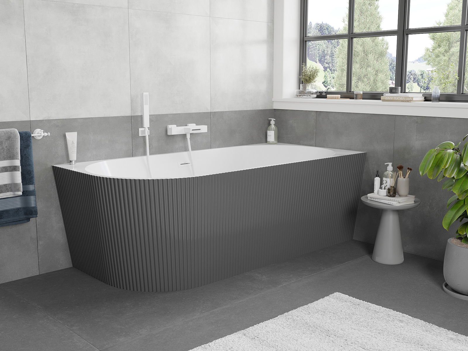 Mexen Silo ъглова свободностояща вана с десен релеф 170 x 80 см, бяла/сива, бял