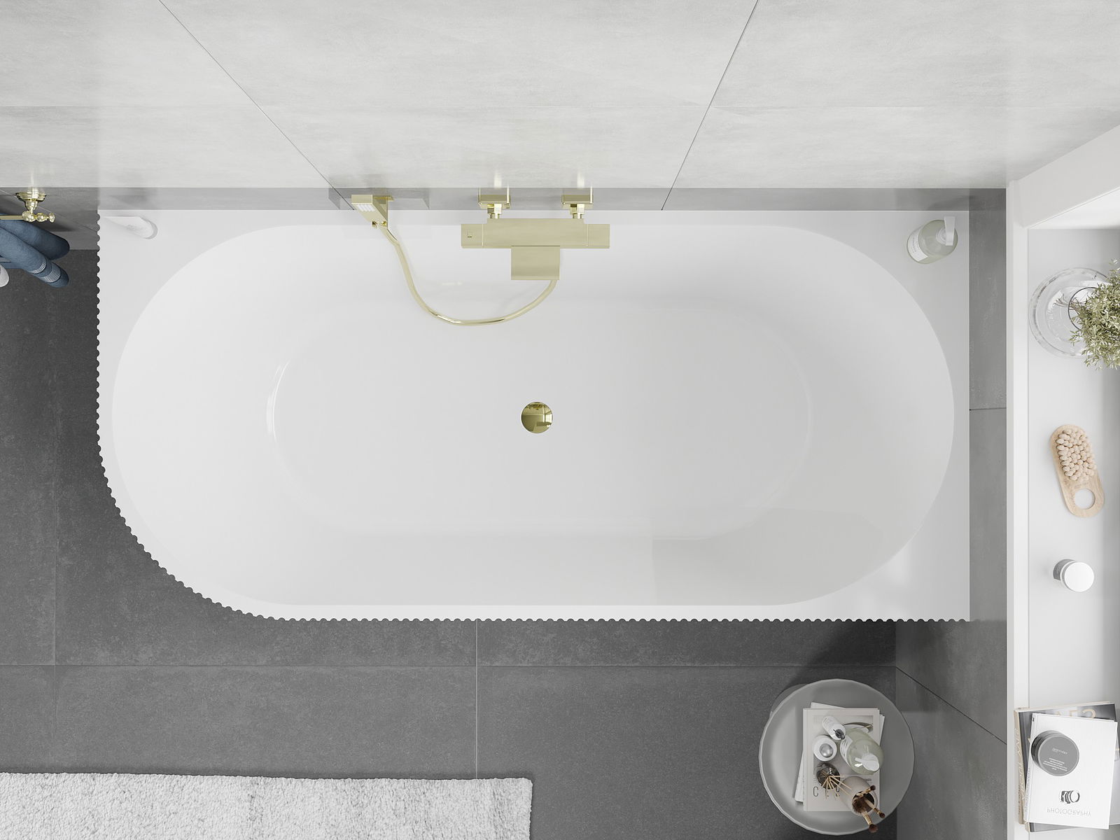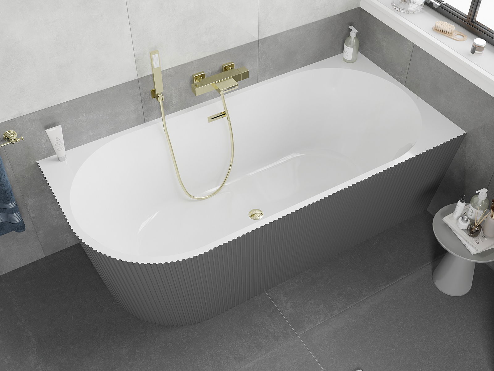 Mexen Silo свободностояща ъглова дясна набраздена вана 170 x 80 см, бяла/сива,