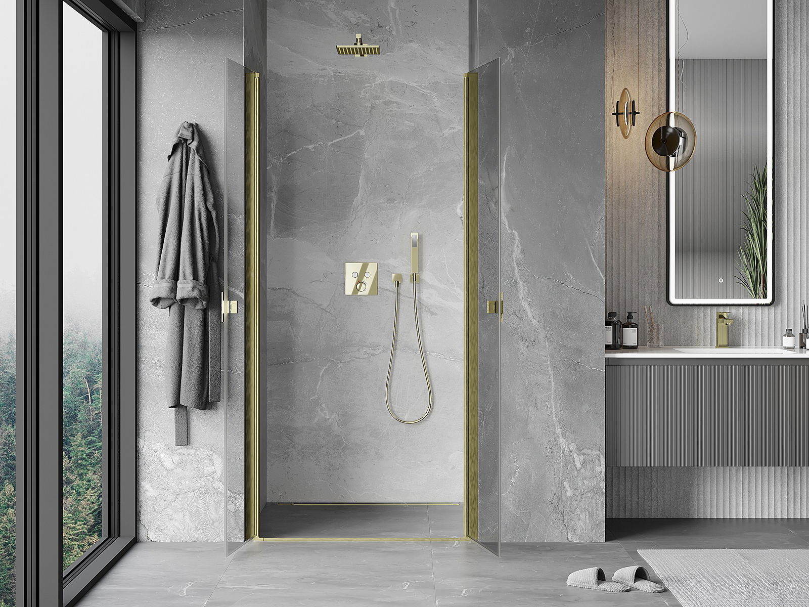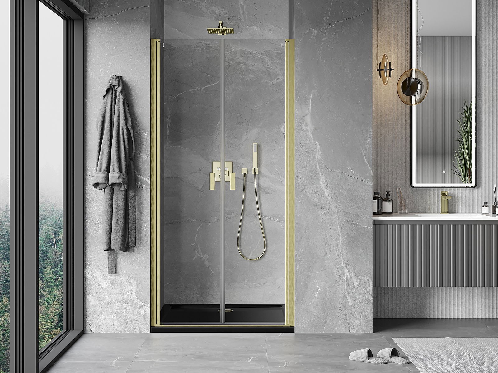 Mexen Mist врати за душ отваряеми 85 см, прозрачни, златисти матови - 8A7-085-000-55-00