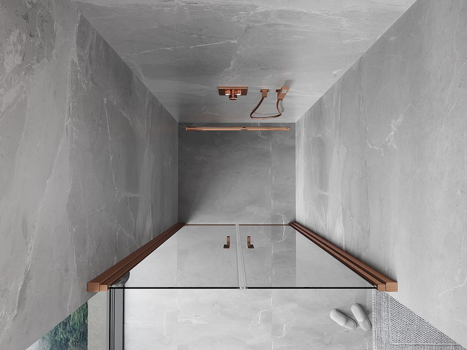 Mexen Mist врата за душ, отварящи се, 80 см, прозрачни, матирана мед - 8A7-080-000-65-00