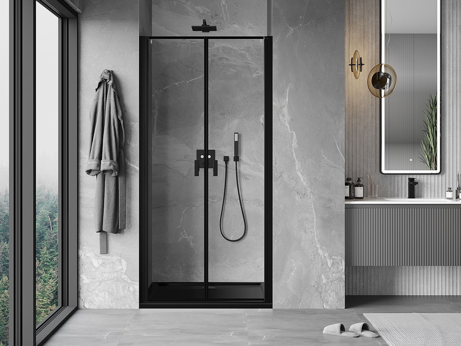 Mexen Mist врати за душ кабина, отварящи се на 75 см, черна рамка, черни - 8A7-075-000-70-70
