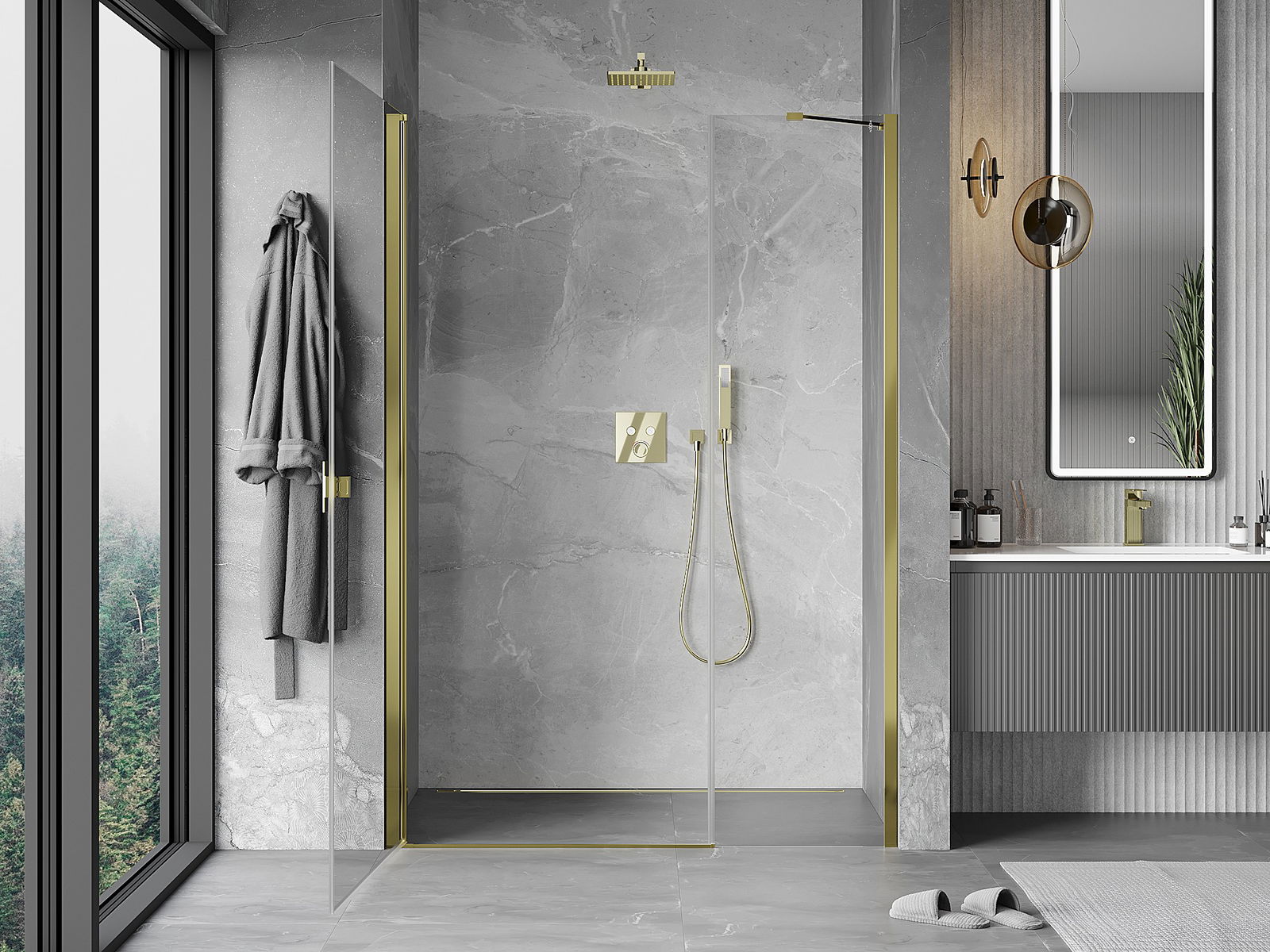 Mexen Mist-B отваряща се душ врата 105 см, прозрачна, златна - 8A2-105-001-50-00