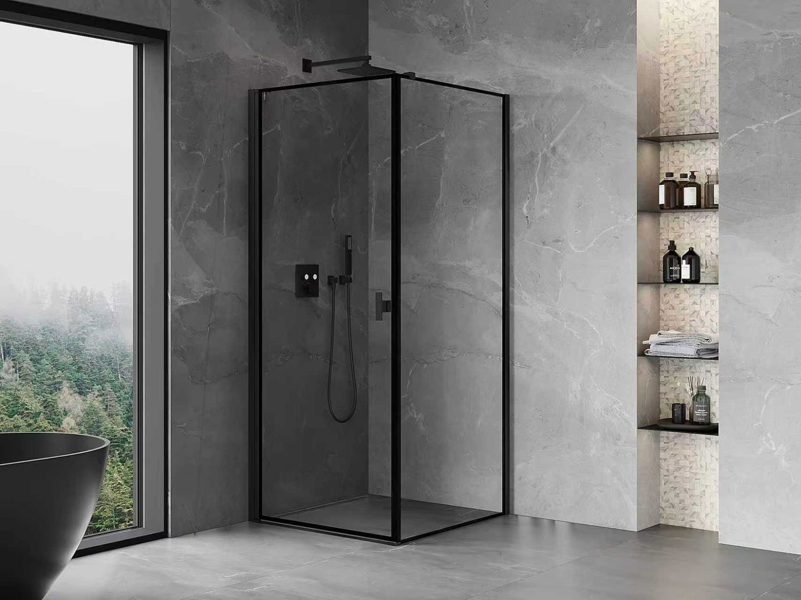 Удобната и практична дръжка е изработена от здрав и устойчив метал. Модерната форма в съчетание с покритието, съответстващо на цвета на профилите, придава на цялото модерен и стилен вид, подчертавайки естетиката на всяка баня.