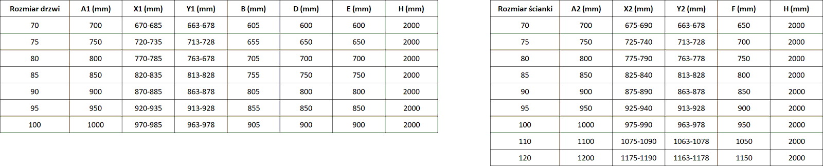 Размер: 70x100 см (дясна врата 70 см, стена 100 см)