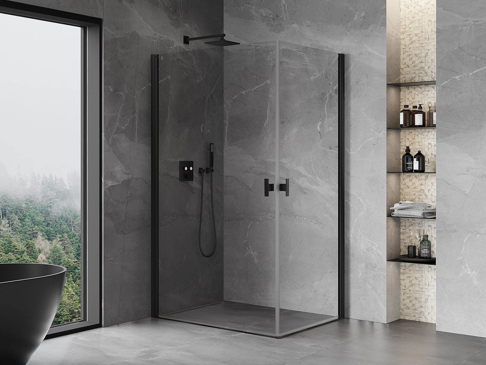 Mexen Mist-B Duo душ кабина 95 x 85 см, прозрачна, черна - 8A2-095-085-70-00