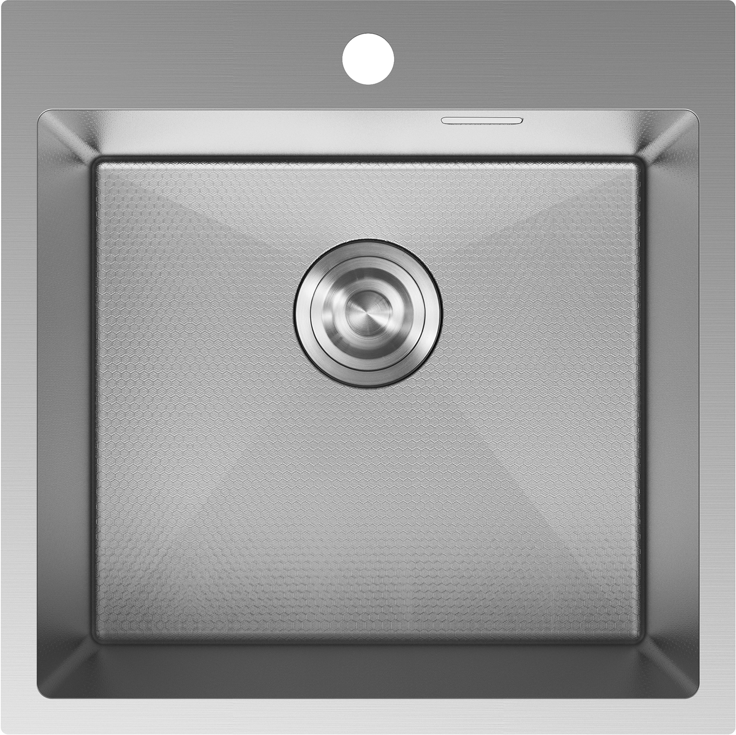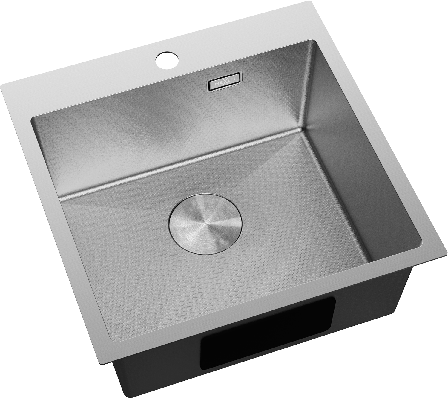 Мивката разполага със скрит преливен отвор, който предпазва от преливане, като същевременно запазва елегантния вид. Дискретно вписан в стената на мивката, той не нарушава нейната естетика. Това е практично и стилно решение, съчетаващо безопасност с модерен дизайн.